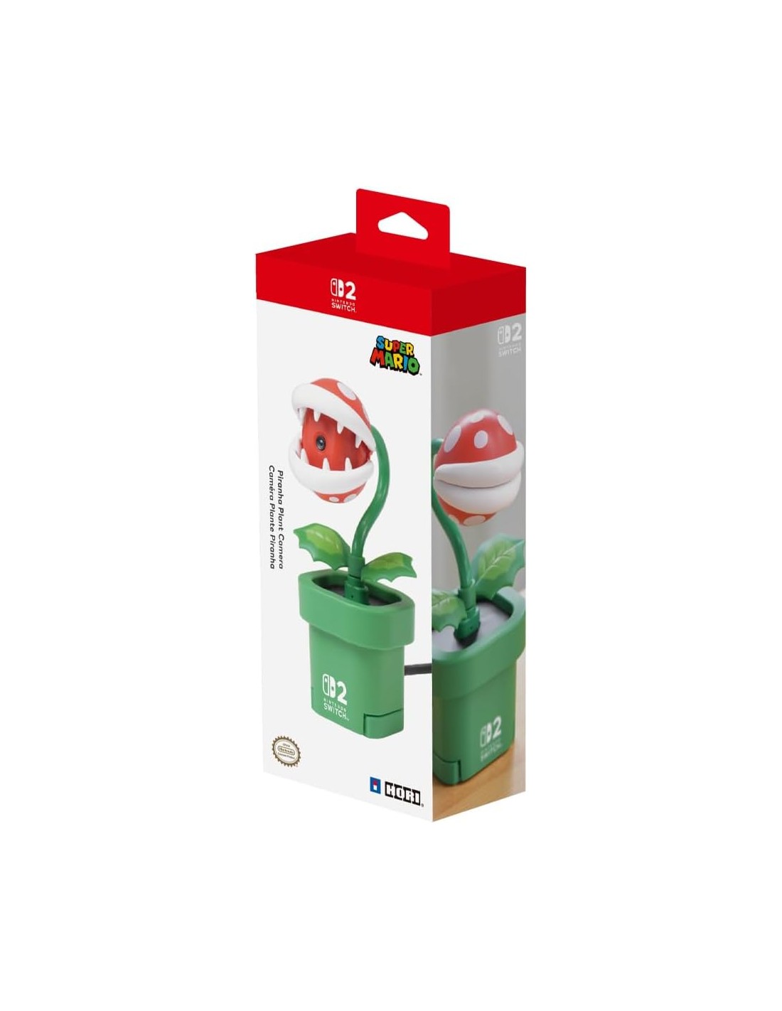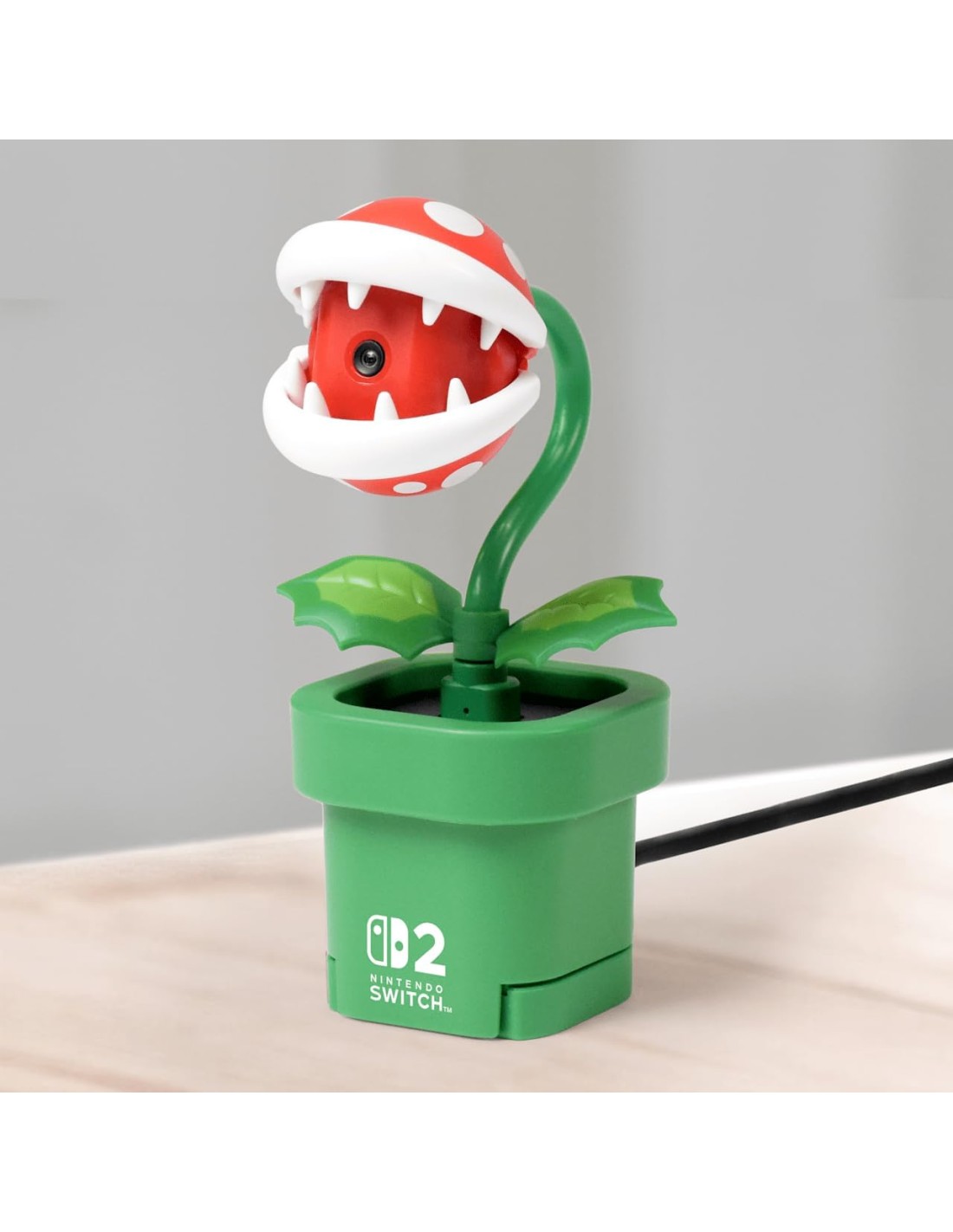 Esta cámara con forma de Planta Piraña está inspirada en el universo de Super Mario, uno de los elementos más reconocibles de la saga. Diseñada para su uso con Nintendo Switch 2, permite capturar imagen para funciones de comunicación, retransmisiones y experiencias multijugador que requieren cámara, aportando además un componente decorativo único. Su diseño detallado y reconocible la convierte en un accesorio llamativo tanto en uso como en exposición, encajando perfectamente en setups gaming y colecciones de merchandising Nintendo. Más allá de su estética, ofrece una solución práctica para quienes buscan ampliar las posibilidades sociales de la consola sin renunciar a la identidad visual clásica de la marca.