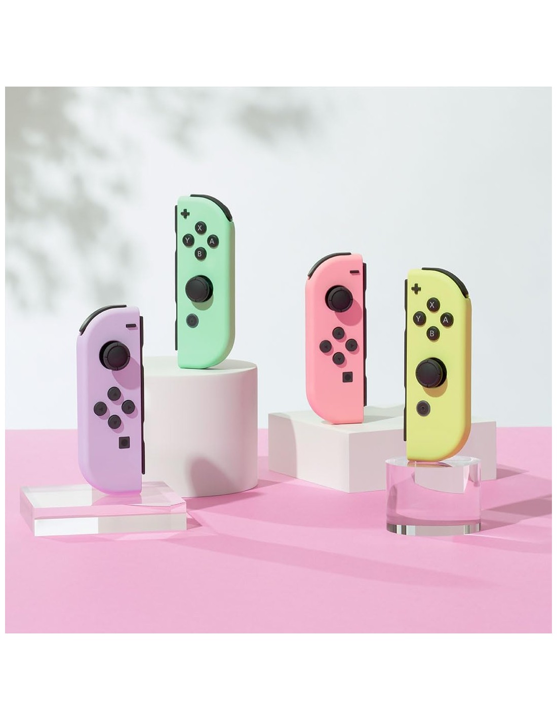 Set compuesto por un mando Joy-Con Morado Pastel (Izquierda), un mando Joy-Con Verde Pastel (Derecha) y dos correas.