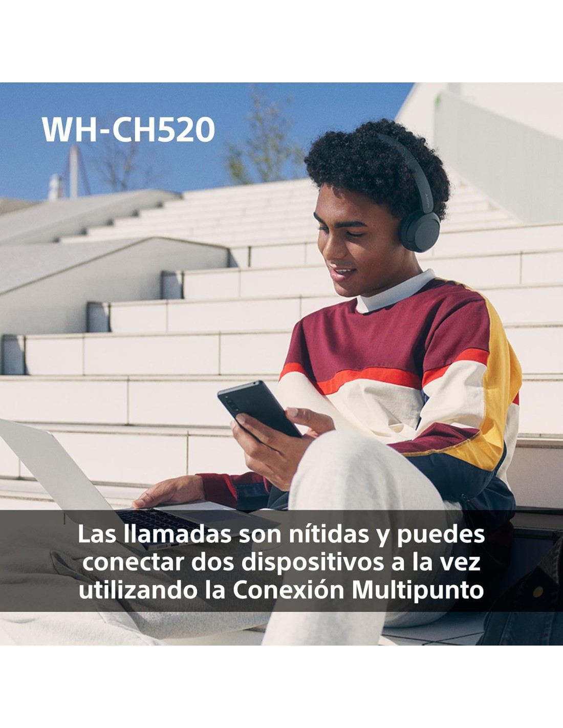 Sony WH-CH520: Auriculares inalámbricos con sonido envolvente, autonomía de hasta 50 horas y tecnología de mejora de audio DSEE. Su conectividad Bluetooth multipunto permite una experiencia intuitiva, ideal para escuchar música y responder llamadas.