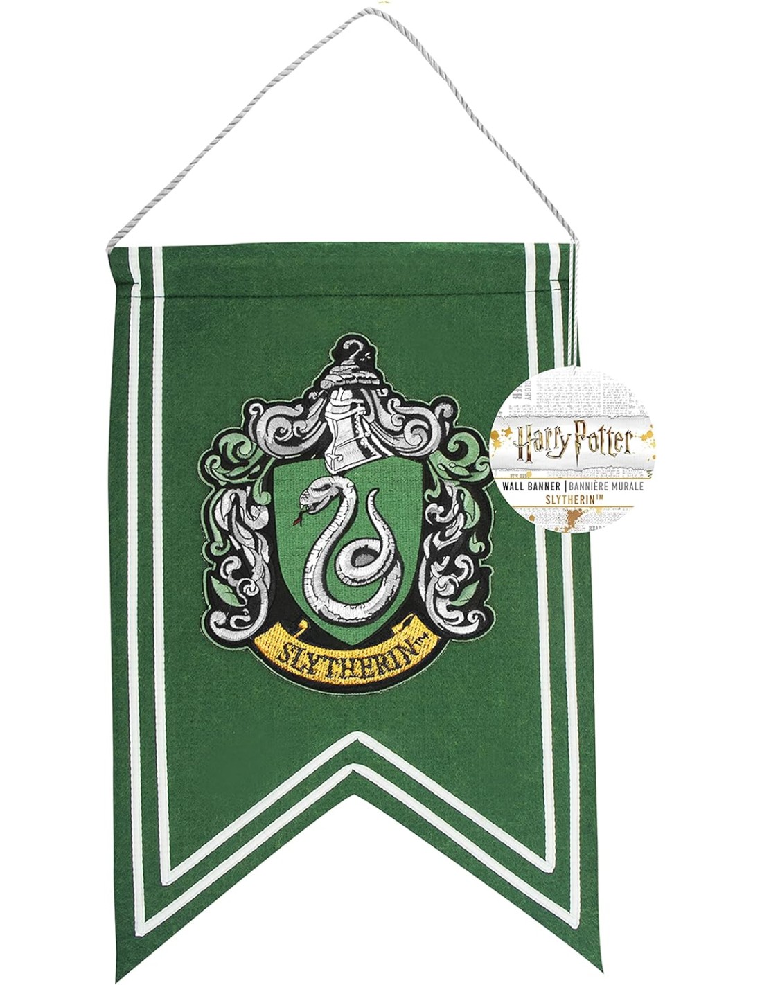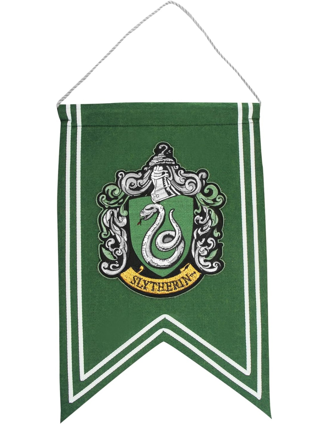 Con unas dimensiones de 42,5 x 28,5 destacará en cualquier espacio. Esta bandera añadirá un toque de misterio y elegancia a tu decoración. Ya sea que la combines con otros objetos de Harry Potter o la exhibas como una pieza única, la bandera Escudo de Slytherin será un punto focal en tu hogar para todos los fanáticos de la saga. ¡Haz que tu espacio sea un tributo a la astucia y la ambición de Slytherin con esta impresionante bandera!
