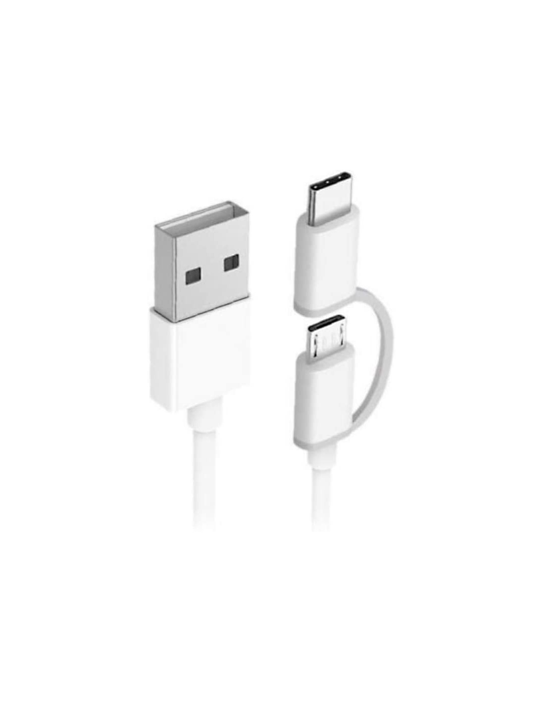 Cable de datos 2 en 1 de Xiaomi con dos conexiones, micro USB y USB tipo C.