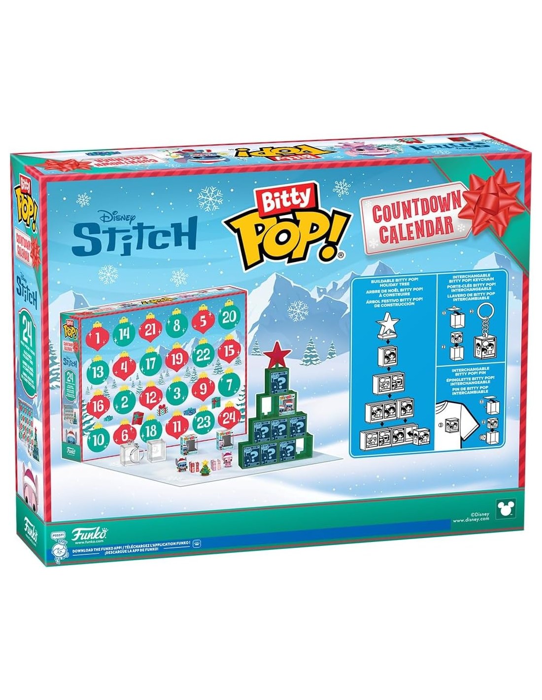 Los Bitty Pop! son figuras coleccionables extremadamente pequeñas, y este calendario de adviento temático de Stitch ofrece 24 sorpresas en total detrás de sus puertas, distribuidas de la siguiente manera: