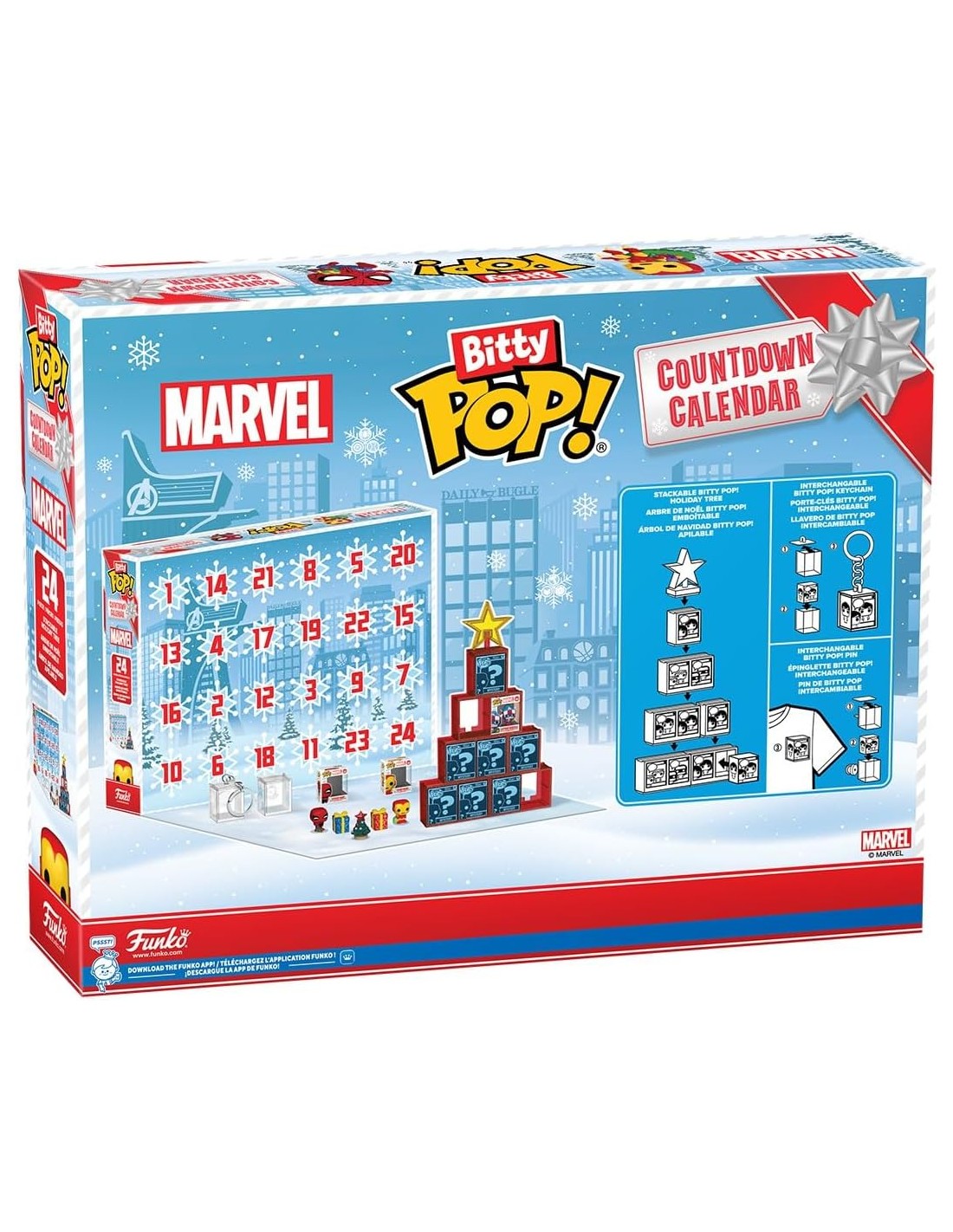 Prepárate para una misión festiva con el Calendario de Adviento Funko Bitty Pop! Marvel Comics (Modelo 87003). Este set celebra la época navideña con 24 días de sorpresas coleccionables del Universo Marvel en el adorable y ultrapequeño formato Bitty Pop!, cuyas figuras de vinilo miden aproximadamente 2,3 cm de alto.