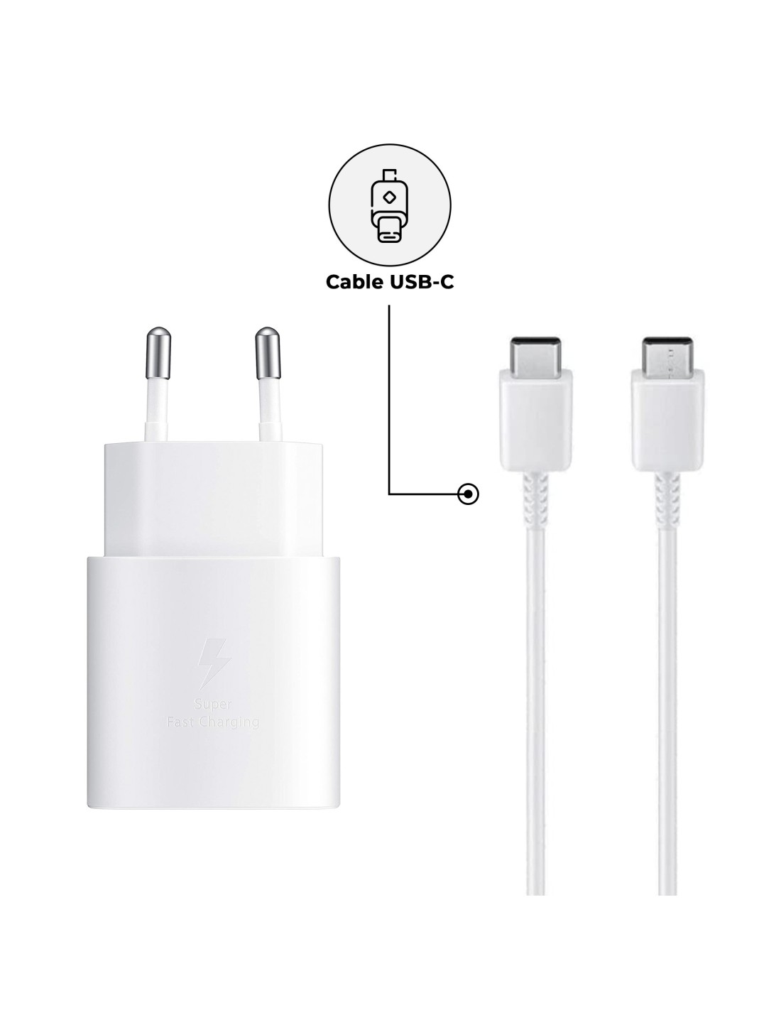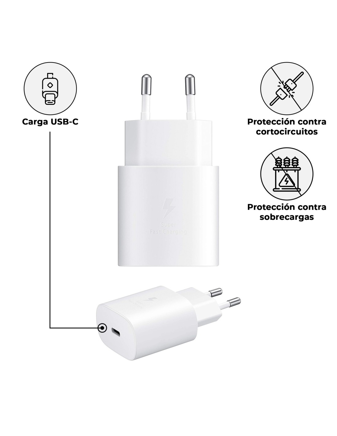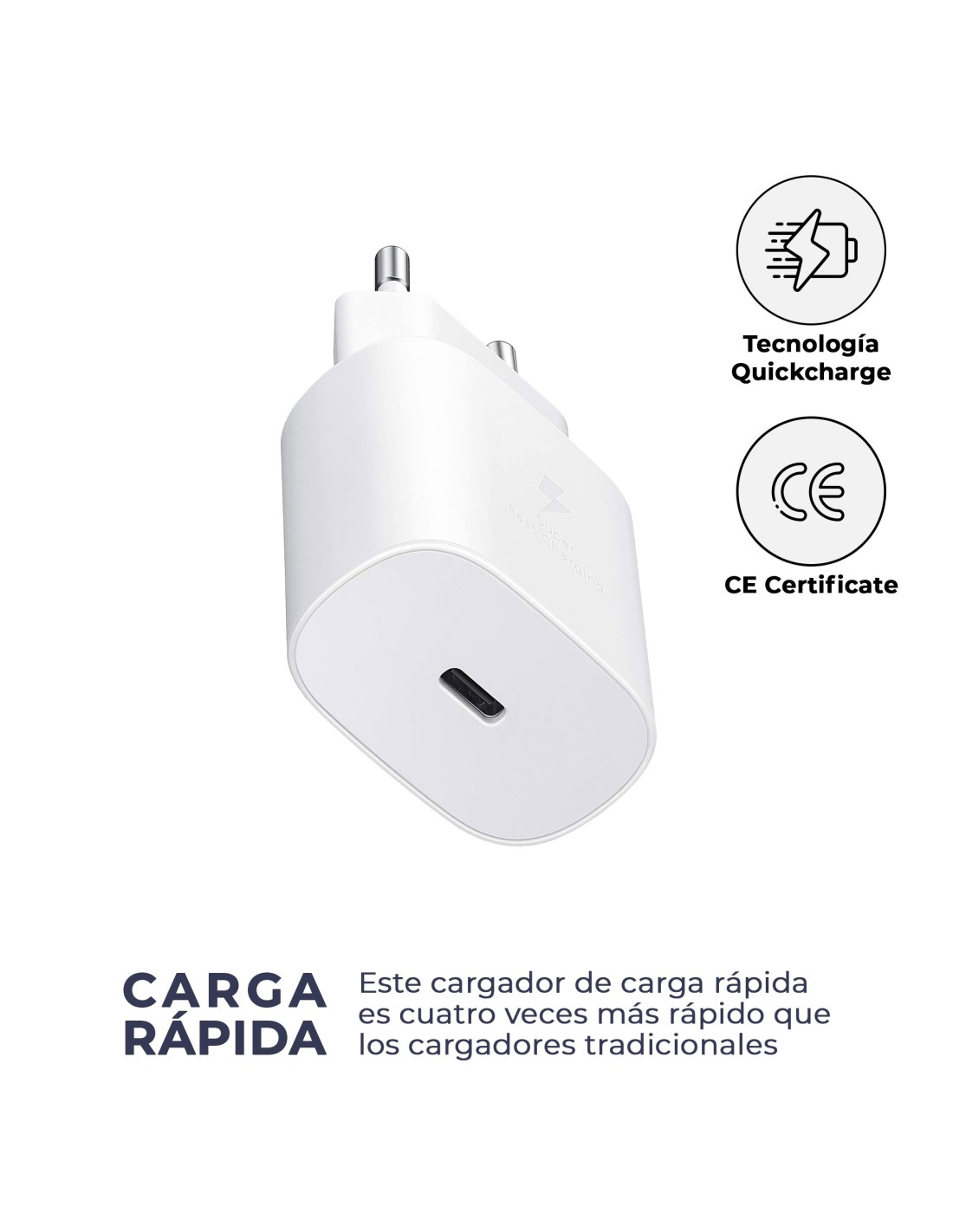 Cargador Compatible EP-TA800EBE + USB C Blanco para Samsung S8 / S9 / S10 / S20 / S21 / Note / Tab- Librephonia