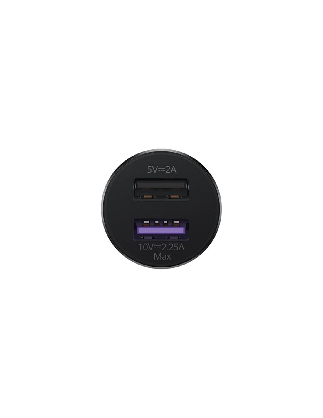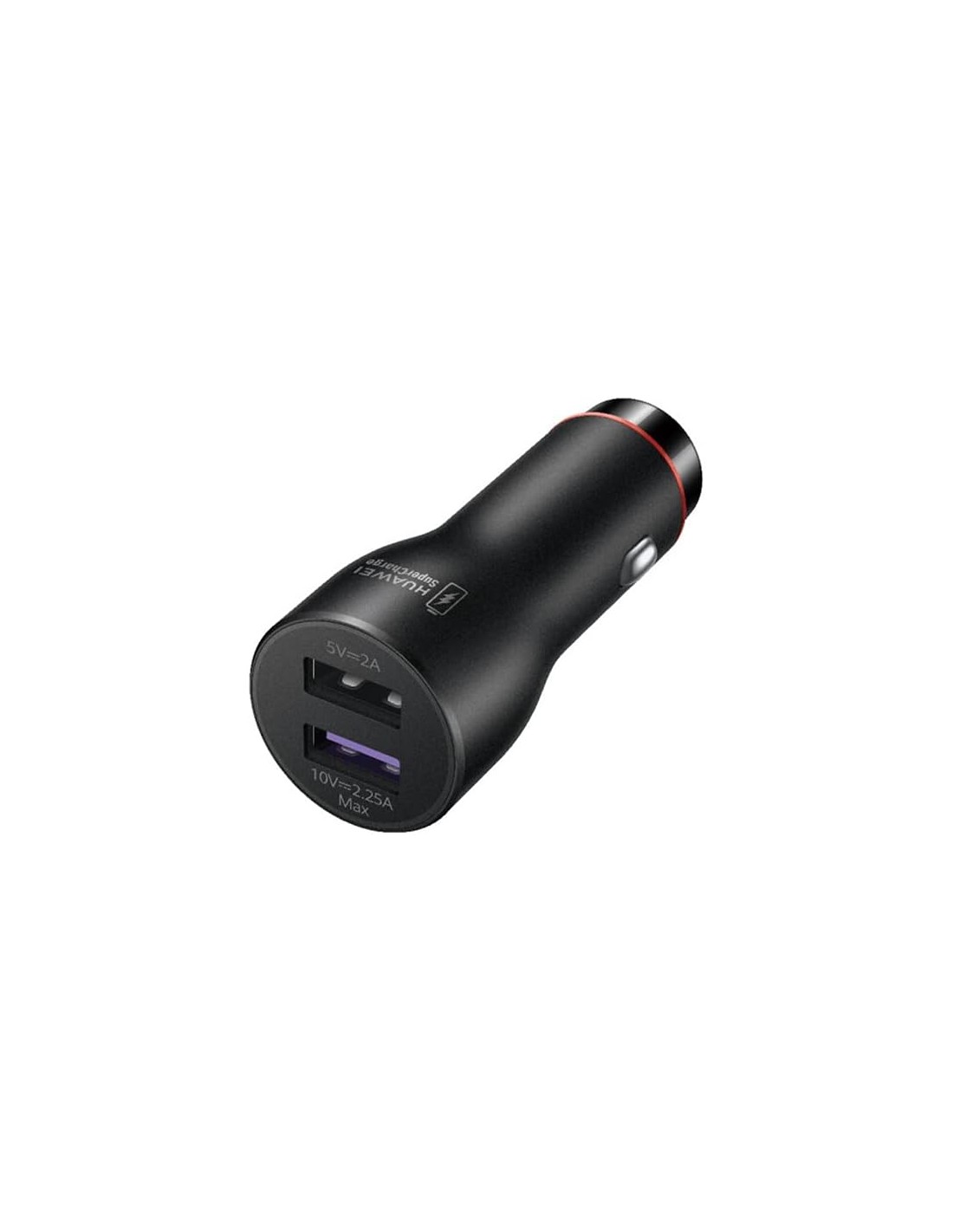 El adaptador de automóvil Huawei CP36 ofrece una potencia máxima de 22,5 W y viene con dos puertos USB para cargar simultáneamente dos dispositivos móviles.