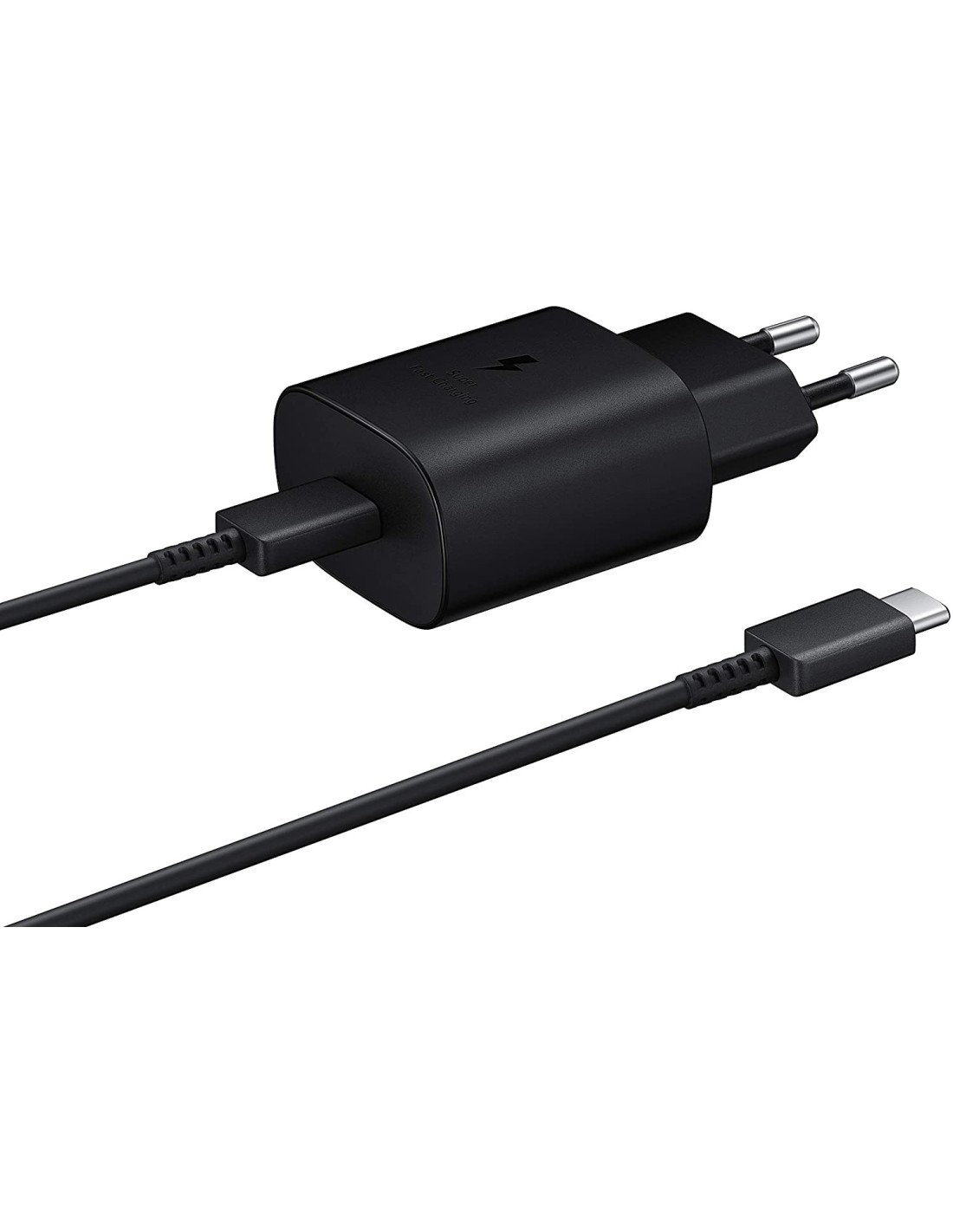 Cables incluidos: USB Tipo-C a USB Tipo-C Carga rápida: Si Color del producto: Negro Compatibilidad: Galaxy S10 5G, S20, A80, A70 o modelos que acepten la función "Carga Rápida" Compatibilidad del cargador: Teléfono móvil o tablet Corriente de salida: 3000 mA Potencia de hasta: 25 W Longitud de cable: 1 m Manual de usuario: Si Número de puertos USB Tipo C: 1 Peso: 50 g Profundidad: 262 mm Tipo de cargador: Interior Voltaje de entrada: 100 - 240 V Voltaje de salida máximo: 11 V