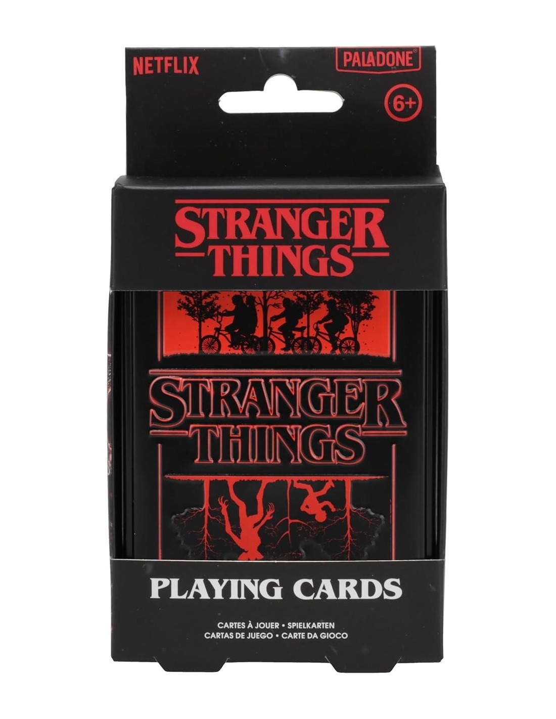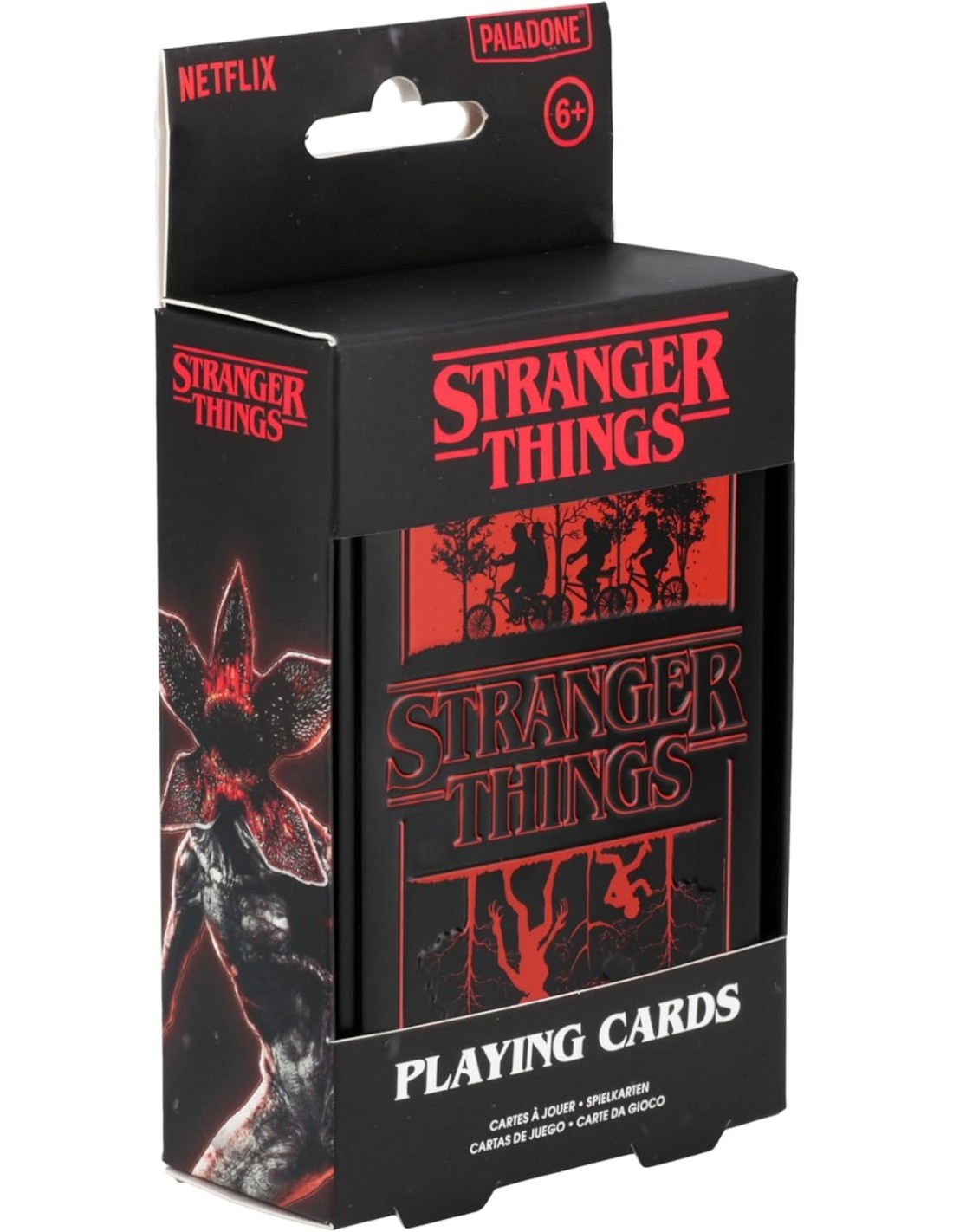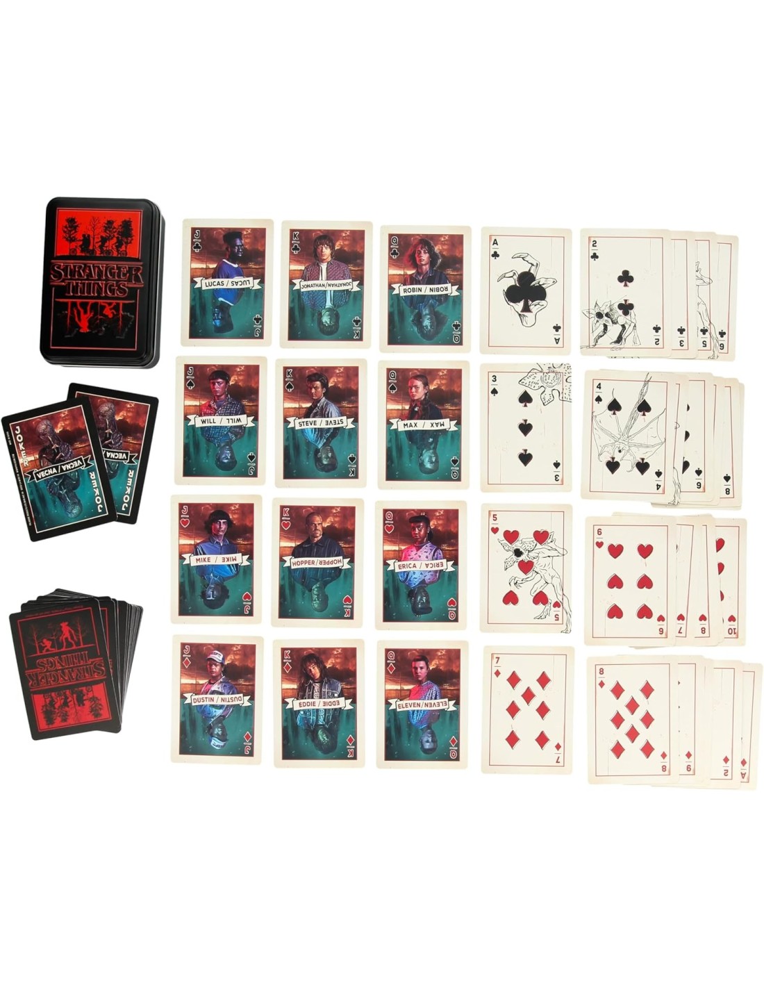Fabricada con materiales de calidad, esta baraja está pensada tanto para el uso habitual en partidas de póker, blackjack u otros juegos de cartas como para formar parte de una colección de merchandising de la serie. Su diseño cuidado la convierte en un artículo perfecto para reuniones entre amigos, noches temáticas o como regalo para seguidores del universo de Hawkins.