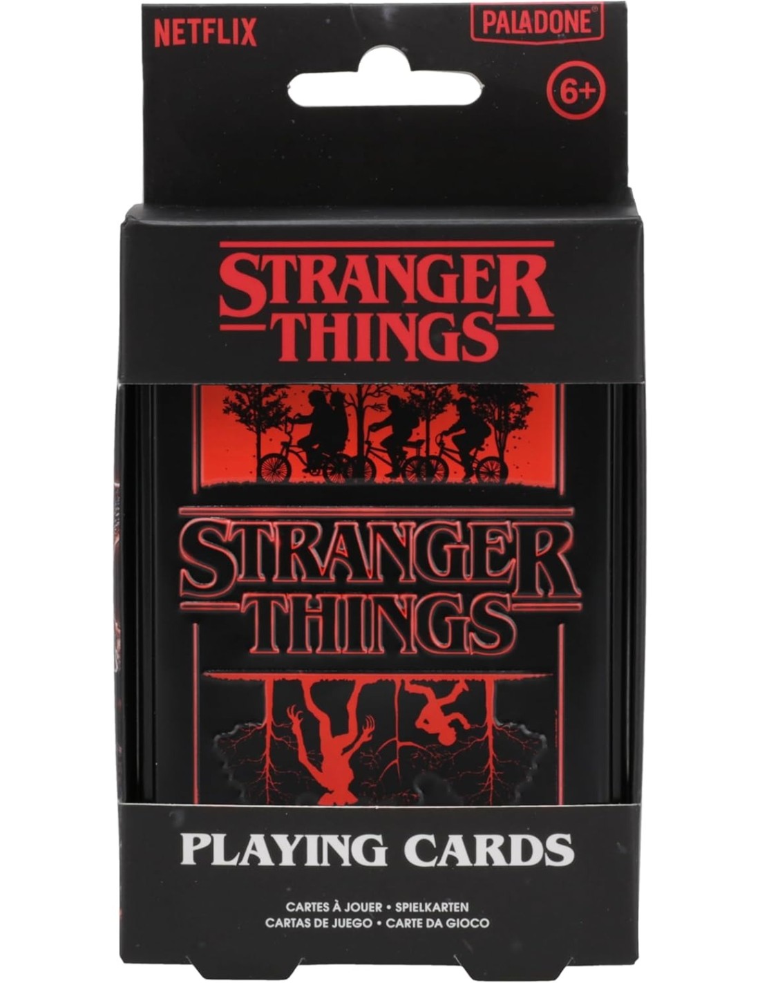 La Baraja de Cartas de Póker Paladone Stranger Things es un producto oficial que combina el juego tradicional de cartas con la estética inconfundible de la exitosa serie de Netflix. Cada carta presenta ilustraciones y detalles gráficos inspirados en personajes, símbolos y elementos icónicos de Stranger Things, ofreciendo una experiencia visual diferente en cada partida.