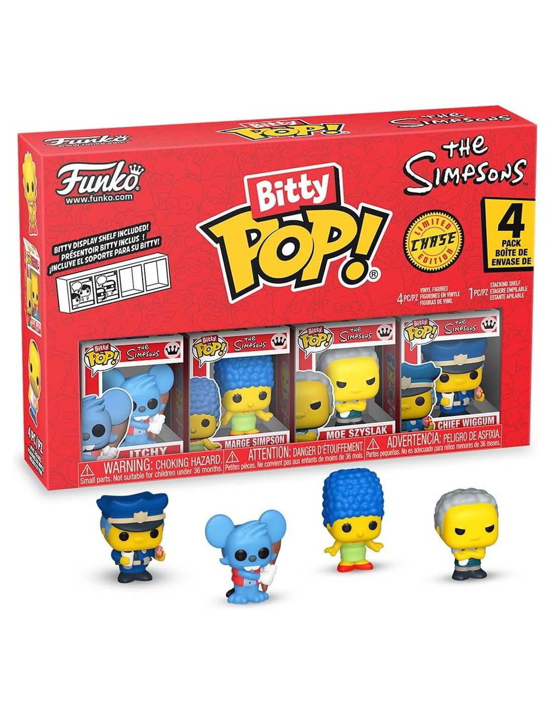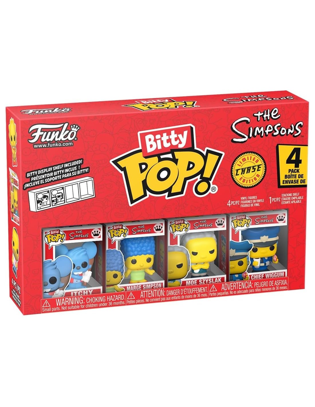 El Pack de 4 Funko Bitty Pop! Los Simpson Itchy Modelo 85708 incluye una mini figura de Itchy, el ratón azul de la serie dentro de la serie: Rasca y Pica. Este set viene con dos figuras adicionales visibles y una figura sorpresa que puede ser común, rara o ultra rara. Cada figura mantiene el estilo inconfundible de Funko, adaptado al formato Bitty Pop!, compacto y perfecto para exhibir o regalar.