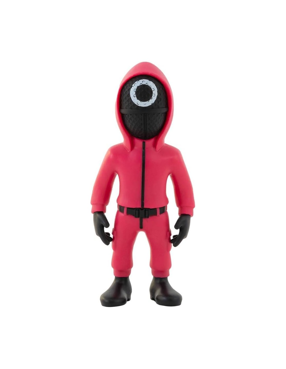 La figura Minix MasKed Guard Modelo 112 representa a uno de los guardias enmascarados de El Juego del Calamar en su segunda temporada. Vestido con el ya emblemático mono rojo y la máscara negra con forma geométrica, este guardia simboliza la vigilancia y el control dentro del retorcido universo de los juegos.