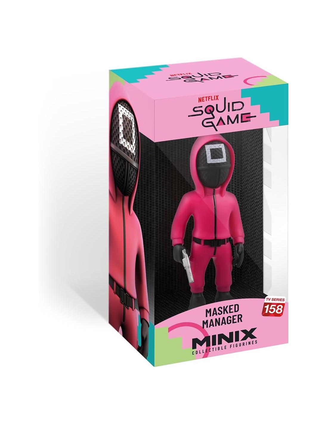 Fabricada en PVC de alta calidad, esta figura de 12 cm de altura destaca por su gran fidelidad estética, con acabados limpios, cabeza sobredimensionada y estilo caricaturesco, característico de la línea Minix. Una pieza imprescindible para los fans de la serie que desean recrear toda la cadena de mando de este fenómeno surcoreano.