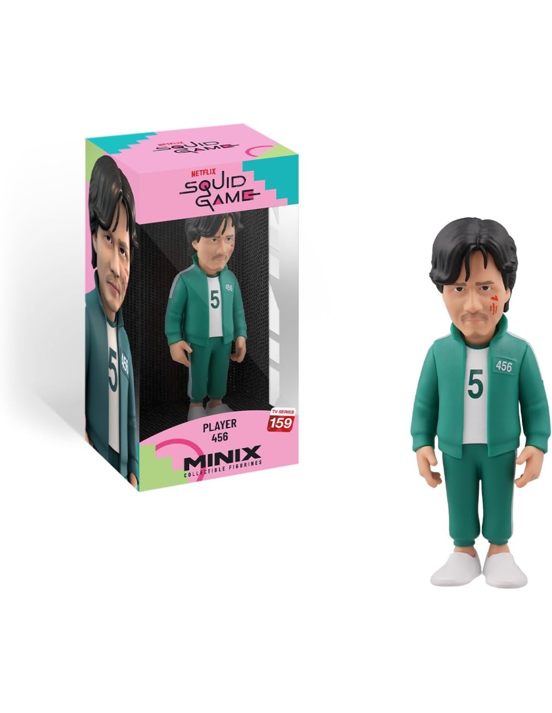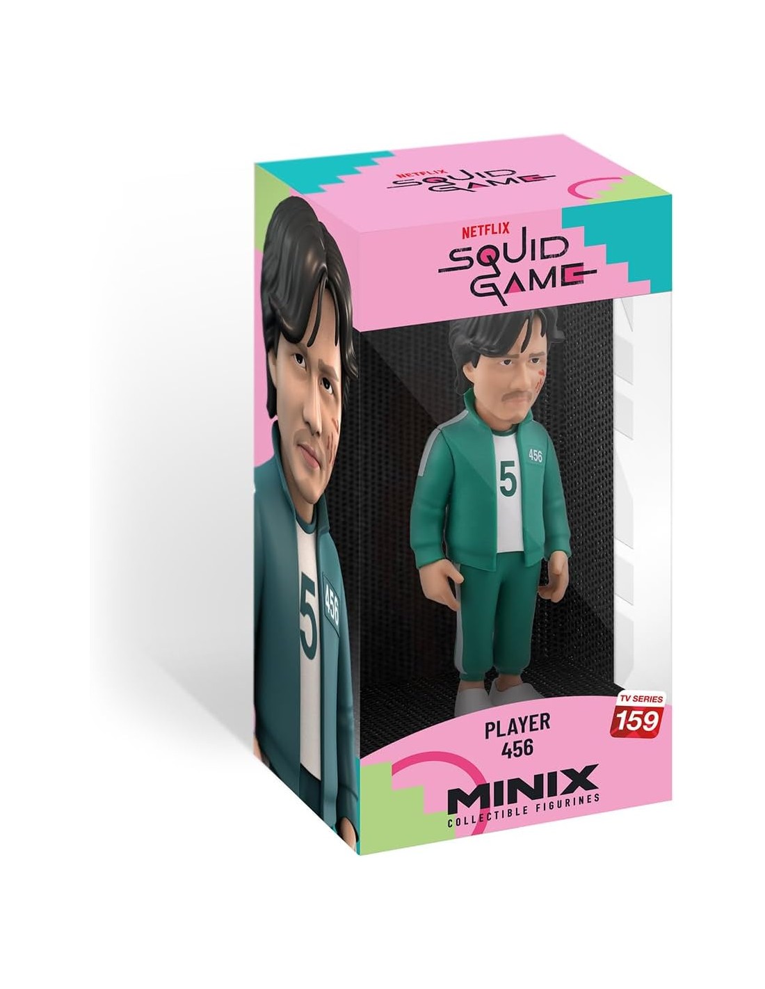 La figura Minix Jugador 456 Modelo 159 representa a Seong Gi-hun, el carismático protagonista de El Juego del Calamar, tal como aparece en la segunda temporada. Vestido con su inconfundible uniforme verde y el número 456 en el pecho, esta figura transmite la lucha interna del personaje por recuperar su humanidad en un entorno despiadado.