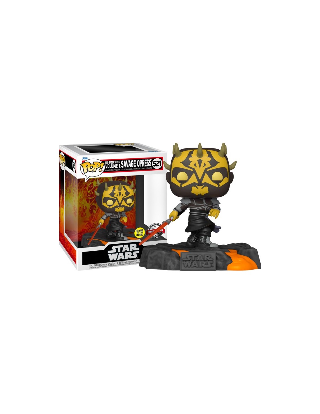 Lo que hace a esta figura un objeto de deseo para coleccionistas es su característica de Edición Especial Glow In The Dark (GITD). Al exponerla a la luz y luego llevarla a un lugar oscuro, el sable de luz de doble hoja de Savage Opress brilla con un resplandor siniestro, al igual que los ojos rojos del personaje, recreando el poder que emana de su conexión con el Lado Oscuro.