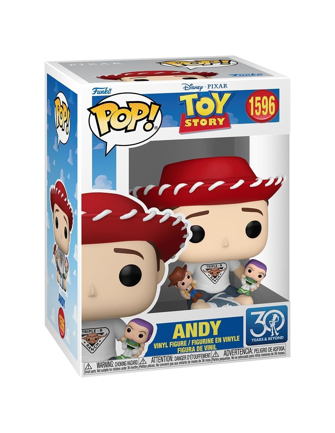 Conmemora el 30 aniversario del clásico de Pixar que lo cambió todo con la Figura Funko Pop! Disney Toy Story de Andy, Modelo 1596. Esta figura coleccionable, más que una simple representación, rinde homenaje al emotivo y agridulce final de la saga, mostrando a Andy ya en su adolescencia.