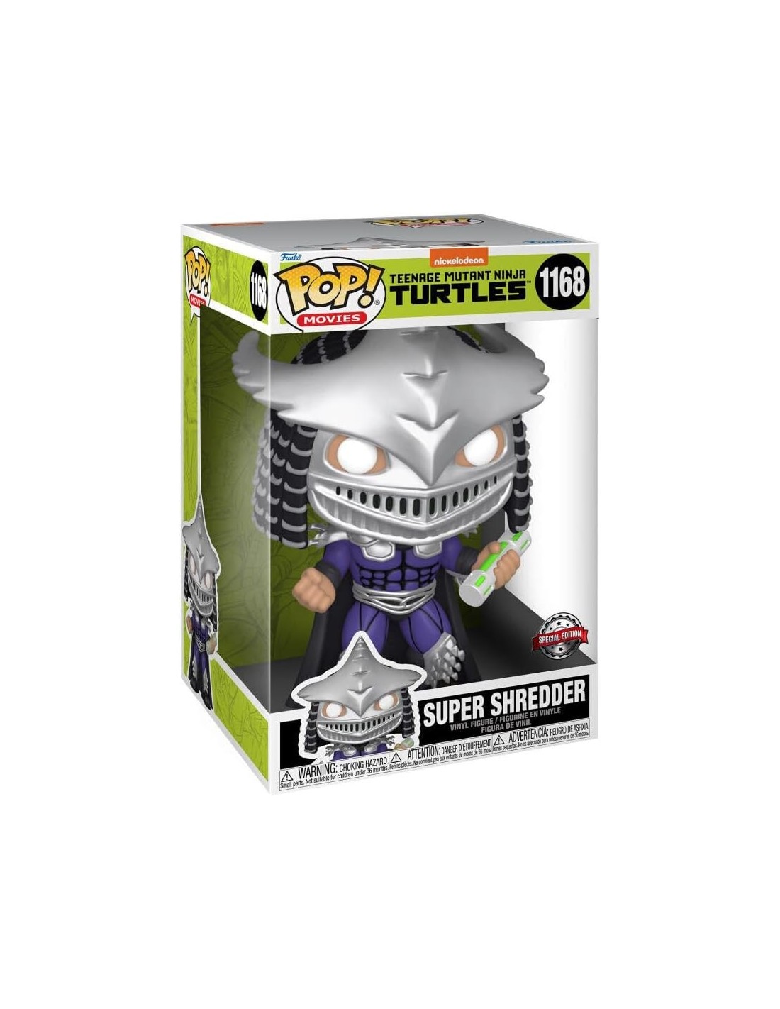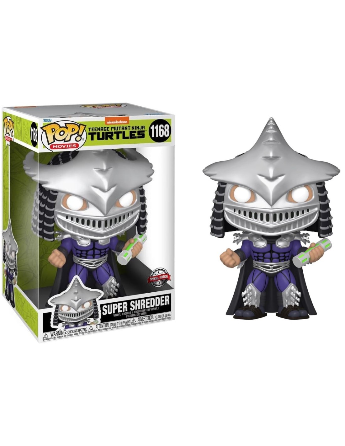 Con el estilo inconfundible de Funko Pop!, la figura de vinilo captura la esencia de Super Shredder, desde su armadura llena de cuchillas y púas hasta sus músculos mutados. El tamaño extragrande le da un impacto visual único, convirtiéndolo en una pieza central para cualquier colección de merchandising de las Tortugas Ninja.