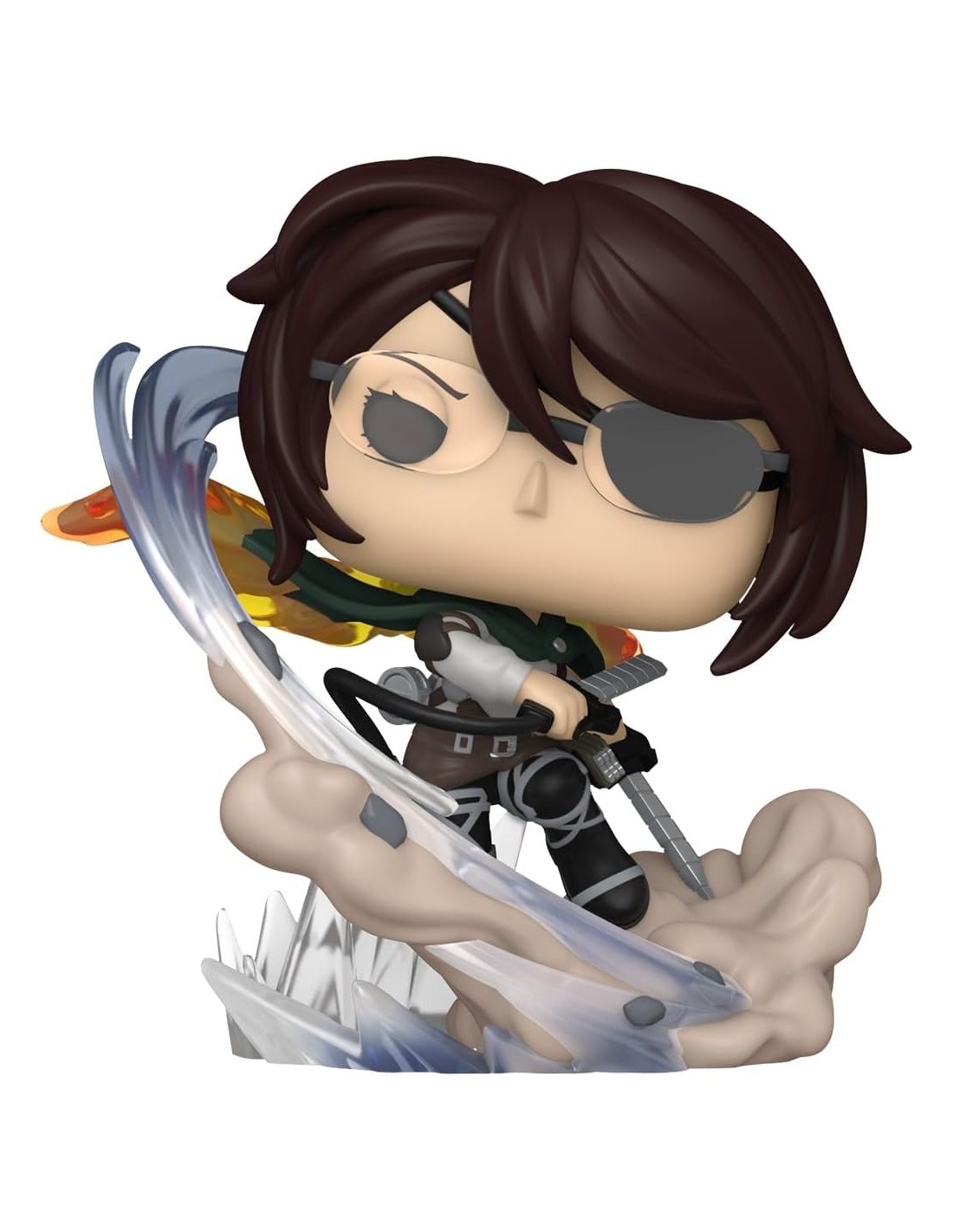 Gracias a su categoría Premium, esta figura es un poco más grande que un Funko Pop! normal, lo que le da un impacto visual único y le permite mostrar más detalles. La figura está fielmente representada, con su característico pelo despeinado, sus gafas de protección y, lo que es más importante, su equipo de maniobras tridimensional (DMT). La figura la captura en una pose de acción, lista para volar por el campo de batalla o para realizar su próximo experimento.
