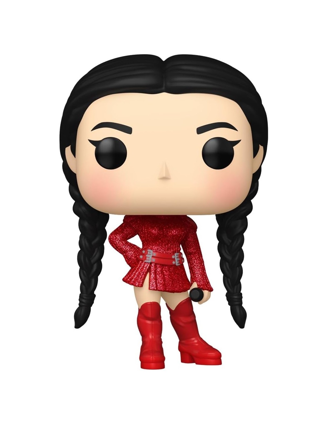 Con el estilo inconfundible de Funko Pop!, la figura de vinilo captura la esencia de Rosalía, con su icónico peinado, sus trenzas, su micrófono y su ropa de moda. La figura está en una pose dinámica, como si estuviera a punto de cantar o bailar. El acabado brillante simula el brillo de las joyas y el glamour de la artista, dándole un toque especial y mágico a la figura.
