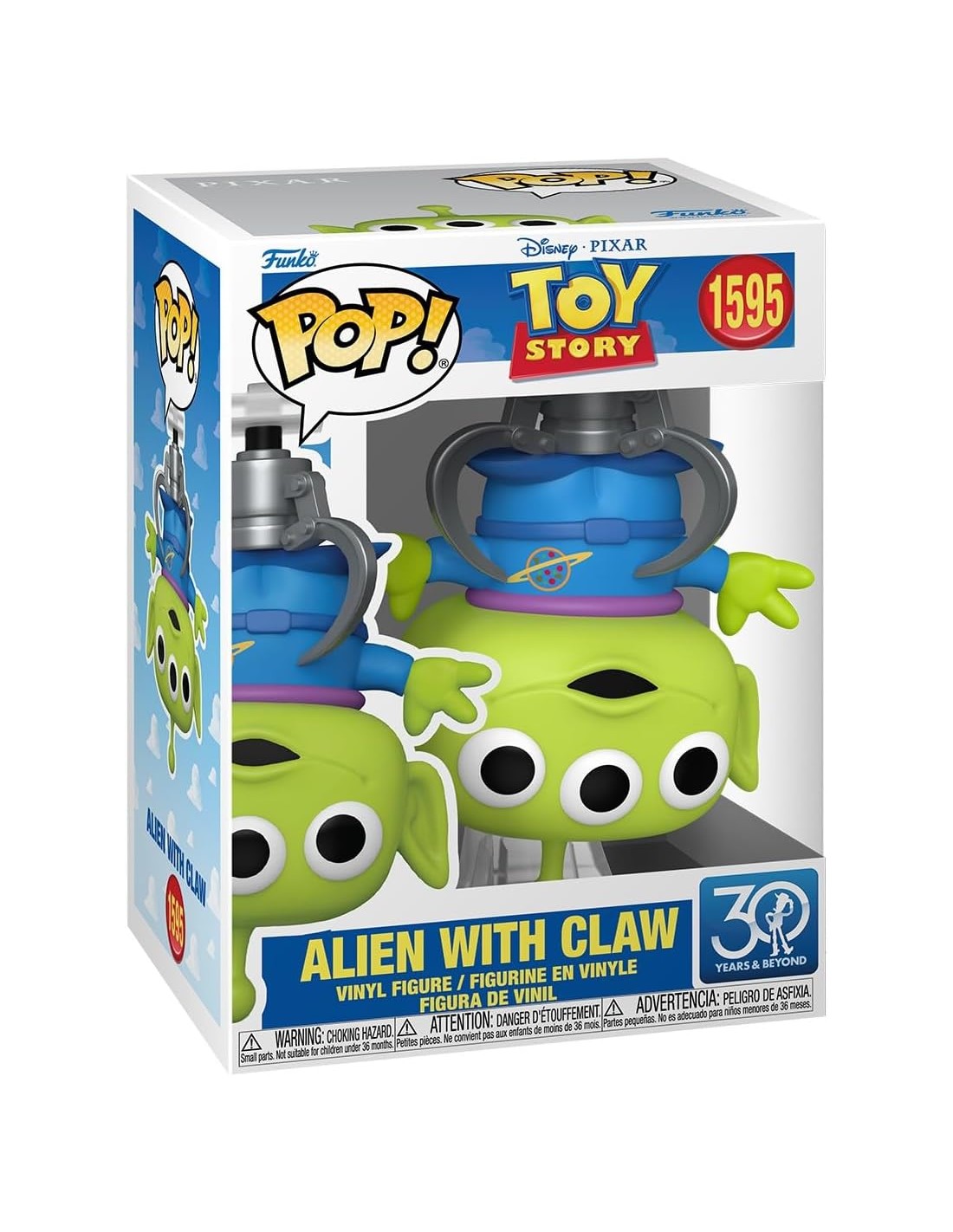 Desde el universo de Disney Pixar Toy Story, llega la Figura Funko Pop! del Alien with claw, Modelo 1595 | 86272. Esta figura recrea uno de los momentos más icónicos y cómicos de la saga: el pequeño extraterrestre verde de tres ojos está colgado del gancho de la máquina de premios, justo cuando es seleccionado por "La Garra", el artefacto que decide su destino.