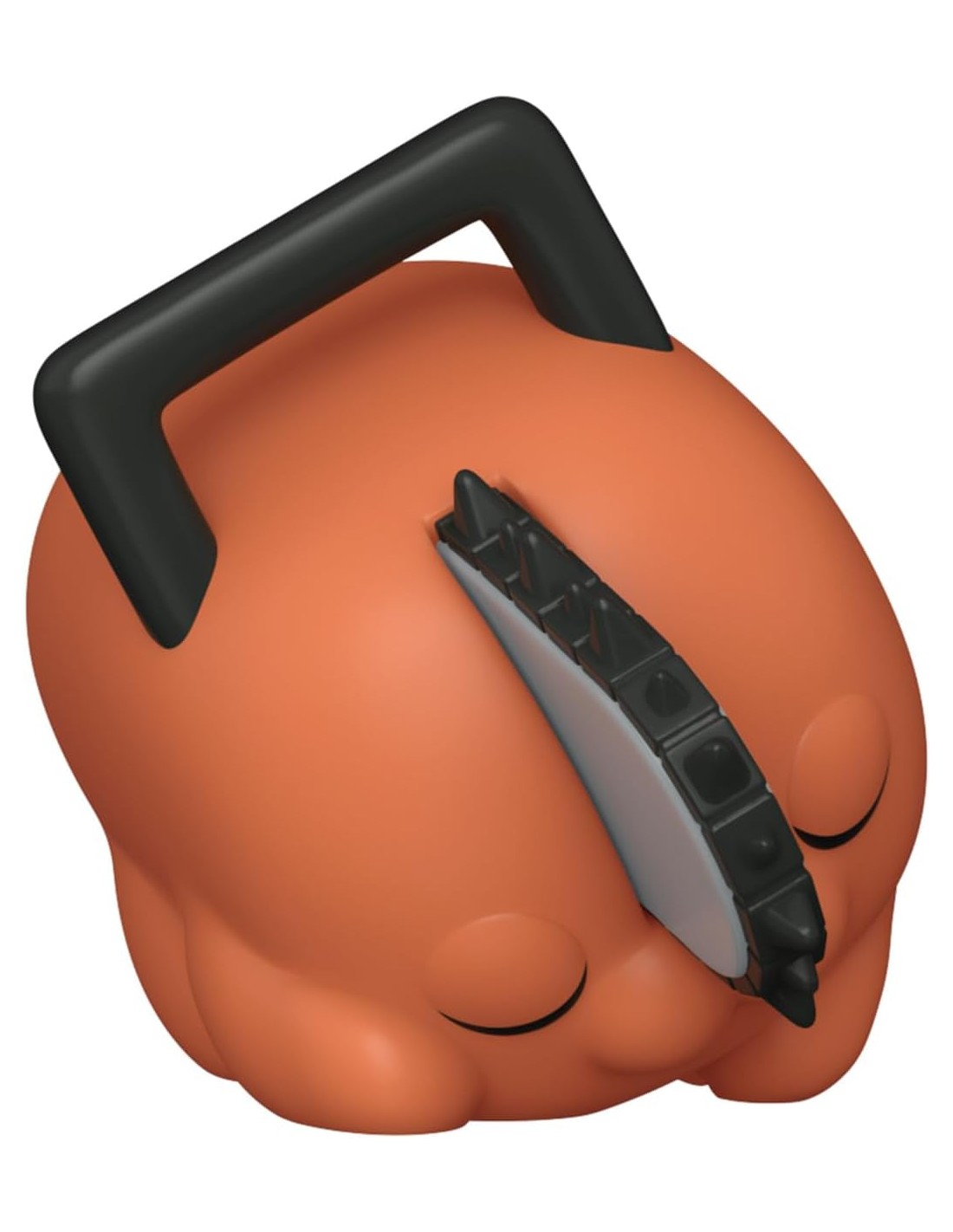 La figura estilizada captura a Pochita en su forma de perro-motosierra, con su cuerpo anaranjado, su pequeña motosierra brotando de la cabeza y una correa de cola. A pesar de su apariencia pequeña y tierna, Pochita es una entidad de inmenso poder y un símbolo de la relación más profunda y conmovedora de la serie.