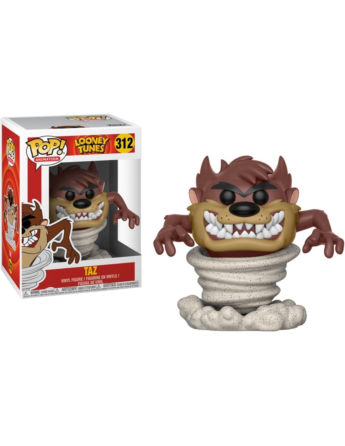 a Figura Funko Pop! Animación Looney Tunes Taz Modelo 312 | 26565 representa al inolvidable demonio de Tasmania, conocido por su voraz apetito y su frenética forma de moverse. Con su diseño fiel al personaje original, la figura muestra a Taz en plena acción, con su torbellino giratorio y expresión exagerada que refleja su naturaleza impredecible y divertida.