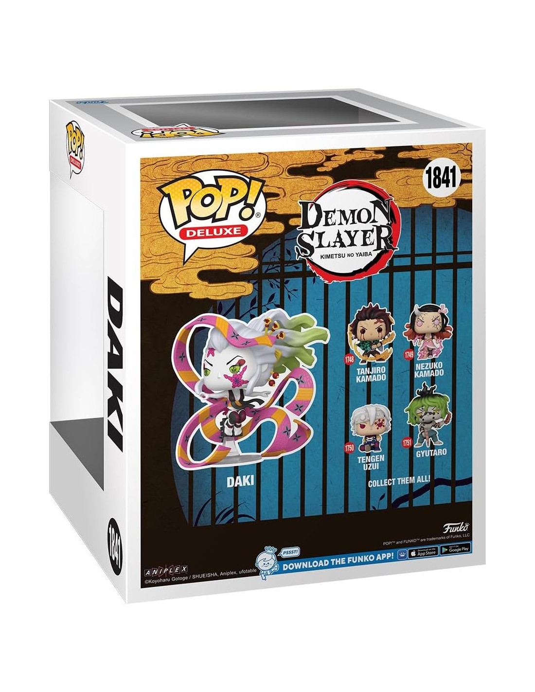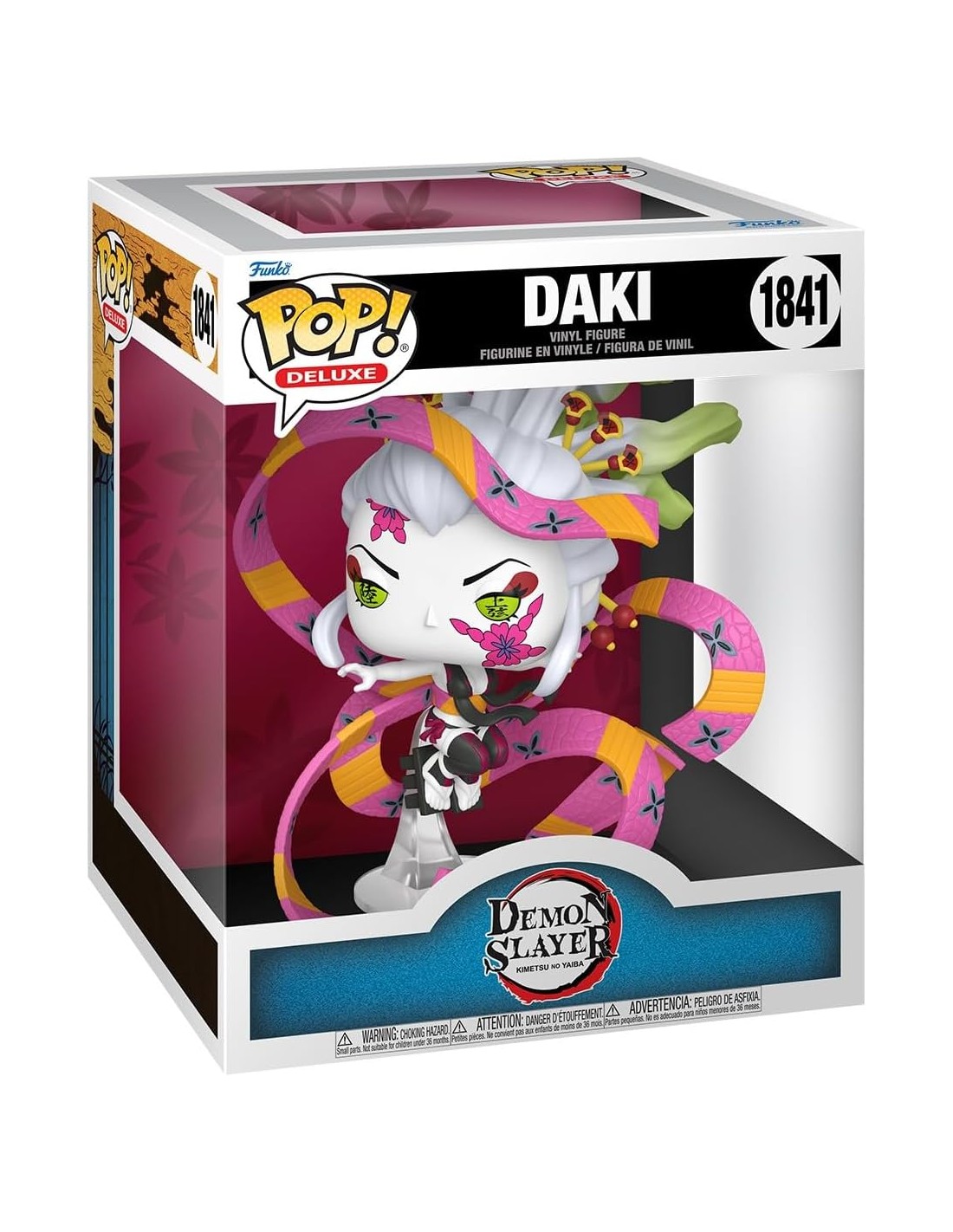 La Figura Funko Super Pop! Deluxe Demon Slayer Daki Demon Form Modelo 1841 | 80331 captura con maestría a Daki, uno de los demonios más temibles de la serie Demon Slayer: Kimetsu no Yaiba. En esta versión Super Pop! Deluxe, Daki aparece en su forma demoníaca completa, mostrando su cabello ondulante, los característicos obis flotantes y una expresión desafiante que refleja toda su arrogancia y poder.