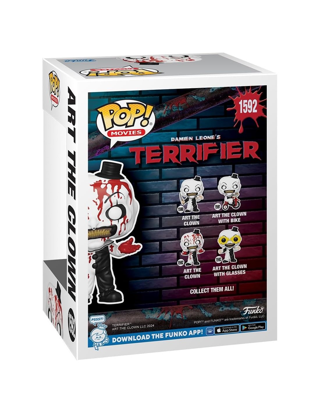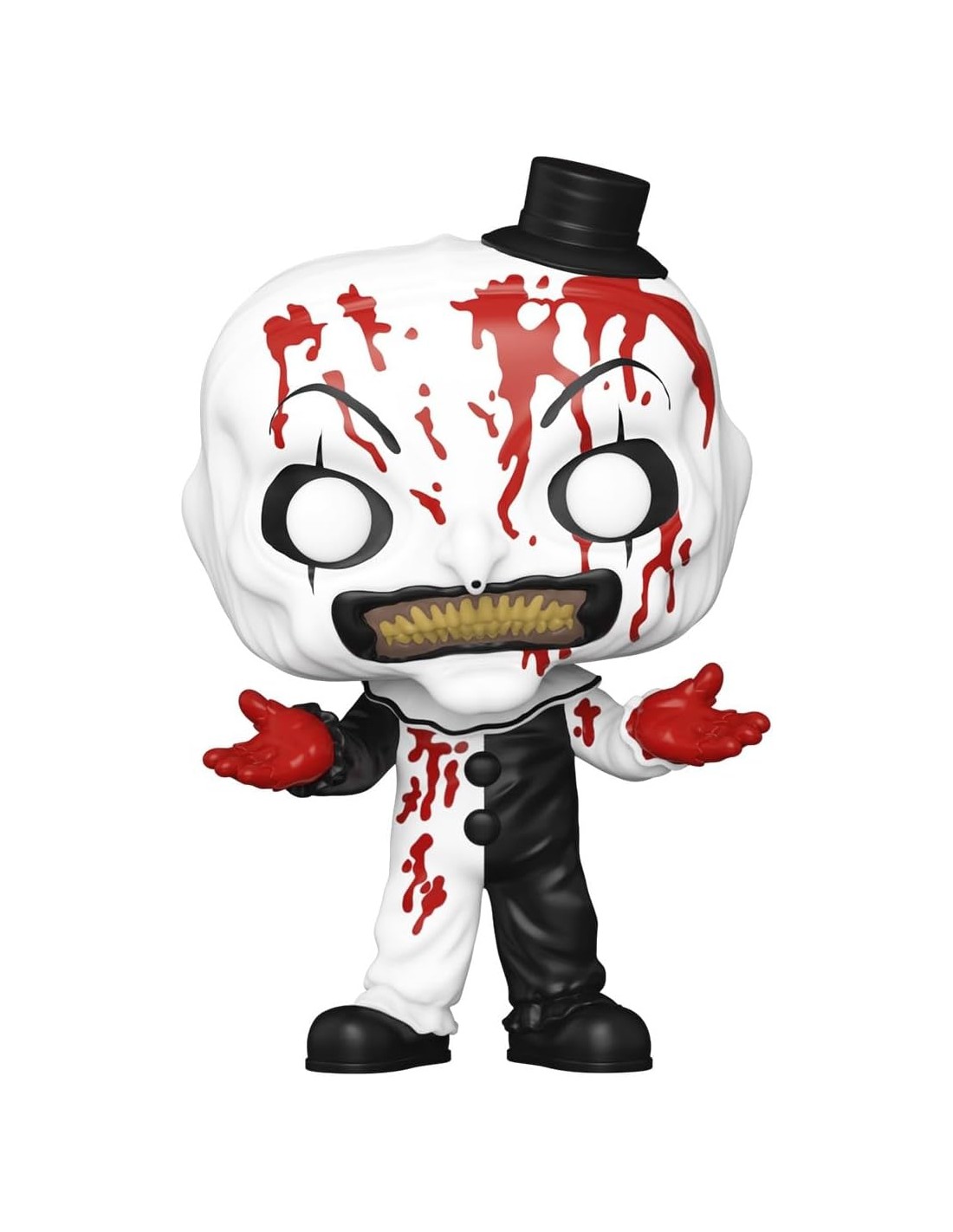 La Figura Funko Pop! Películas Terrifier 2 Art The Clown con Sangre Modelo 1592 | 80707 captura a uno de los villanos más perturbadores del cine de terror contemporáneo. Con su traje blanco y negro cubierto de sangre, sonrisa macabra y mirada vacía, Art The Clown luce más inquietante que nunca en esta edición especial.