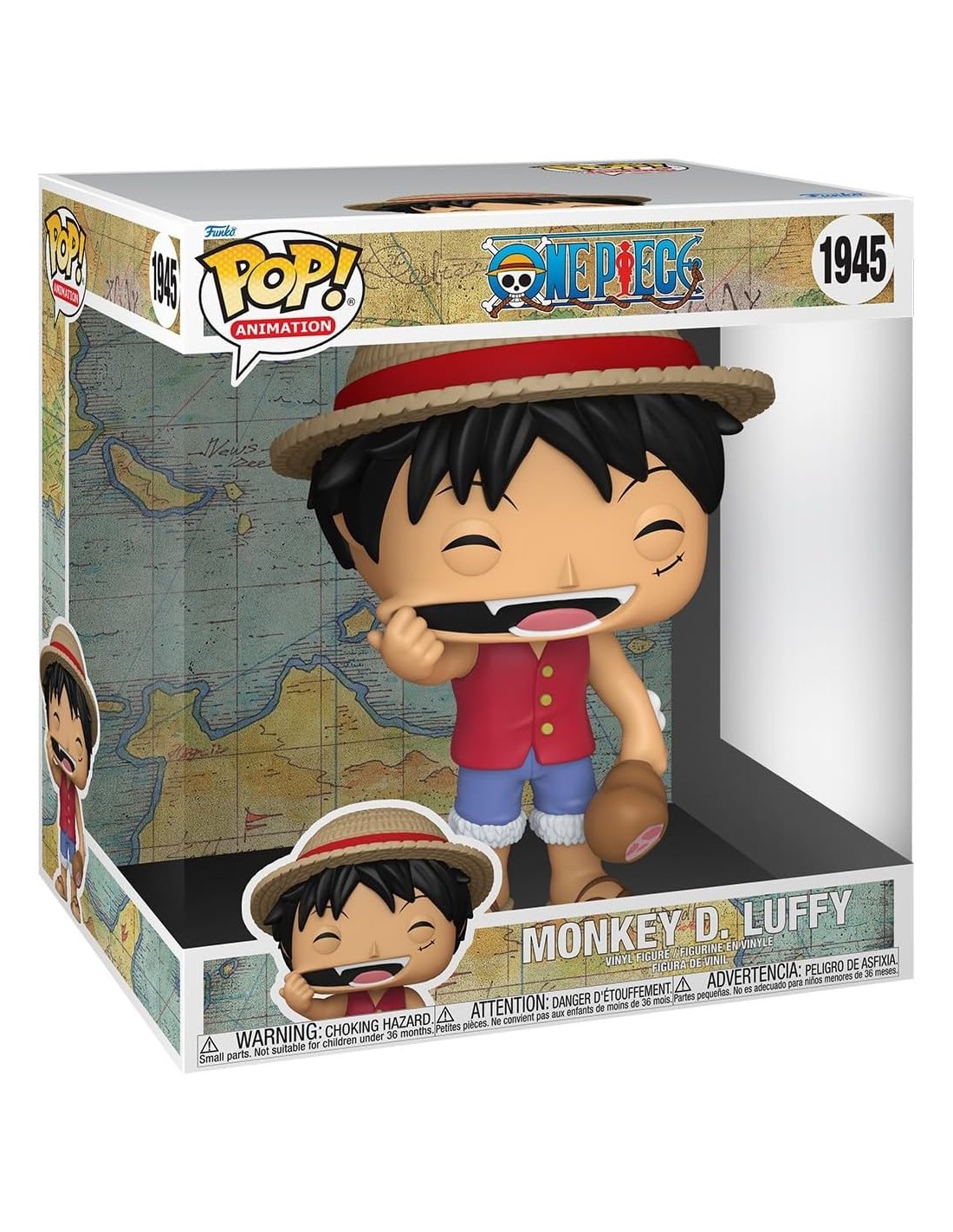 La Figura Funko Pop! Jumbo 10" One Piece Luffy Modelo 1945 | 87244 captura a Monkey D. Luffy, protagonista de One Piece, en todo su carisma y energía aventurera. Con su sombrero de paja, chaqueta roja y sonrisa confiada, esta figura de 10 pulgadas destaca por su tamaño impresionante y nivel de detalle excepcional.