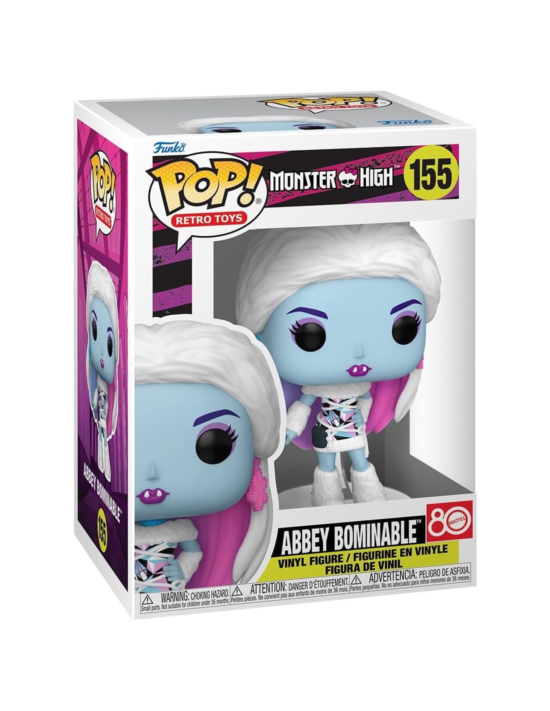 La Figura Funko Pop! Juguetes Retro Monster High Abbey Bominable Modelo 155 | 83818 captura a Abbey Bominable, la hija del Yeti, con su característico abrigo y accesorios de invierno, reflejando su personalidad fuerte, independiente y glacial. La figura destaca por los detalles de su vestimenta, cabello y expresión, manteniendo el estilo retro y colorido que define a la franquicia Monster High.