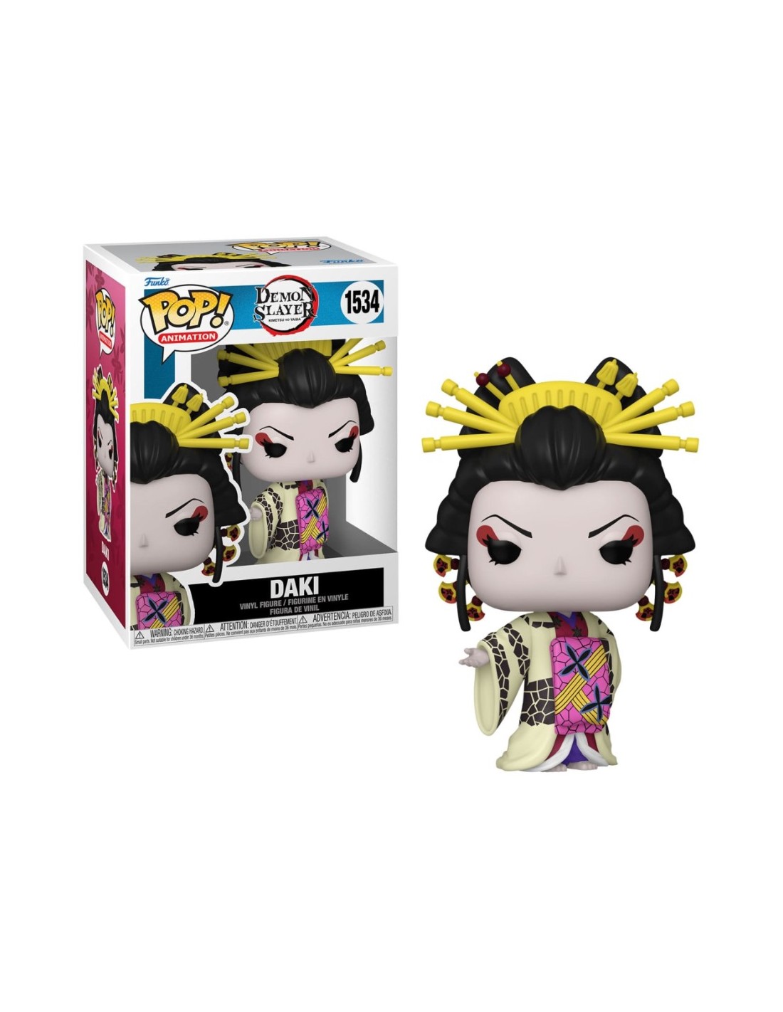Desde el arco épico del Distrito de la Luz Roja del aclamado anime Demon Slayer: Kimetsu no Yaiba, llega la Figura Funko Pop! de Daki, Modelo 1534 | 75571. Daki, junto a su hermano Gyutaro, es uno de los demonios de la Luna Superior Seis (Upper Rank Six), conocida por su belleza, su temperamento infantil y su increíble fuerza en combate.