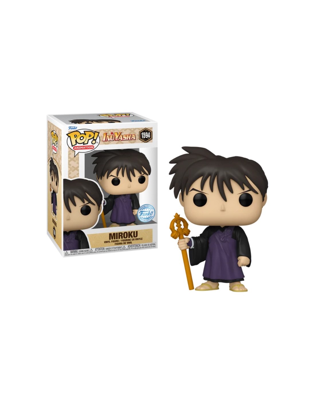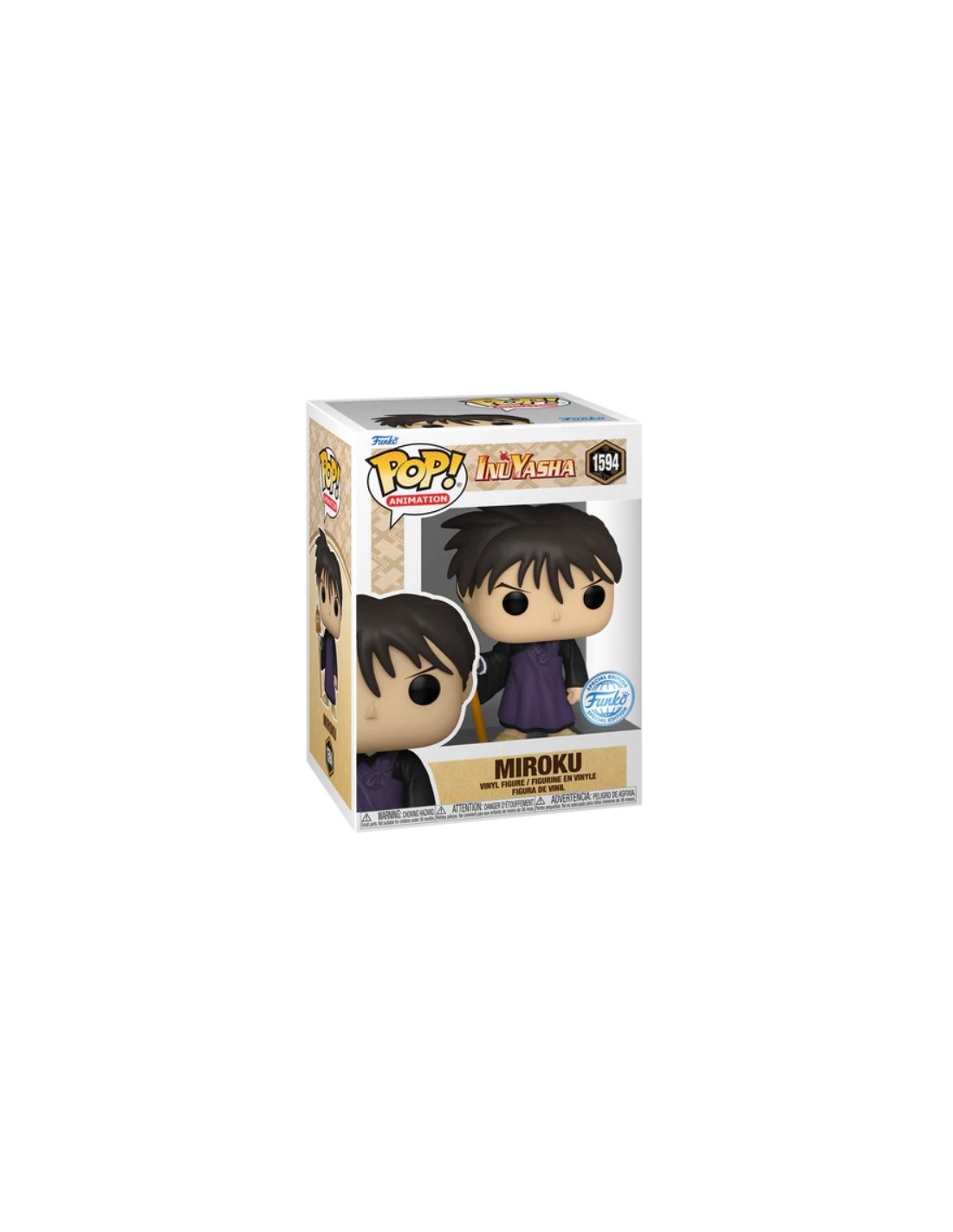 Desde el querido y clásico anime Inuyasha, llega la Figura Funko Pop! de Miroku, Modelo 1594 | 77401. Esta pieza es una Edición Especial, lo que la hace un lanzamiento limitado y muy buscado por los coleccionistas.