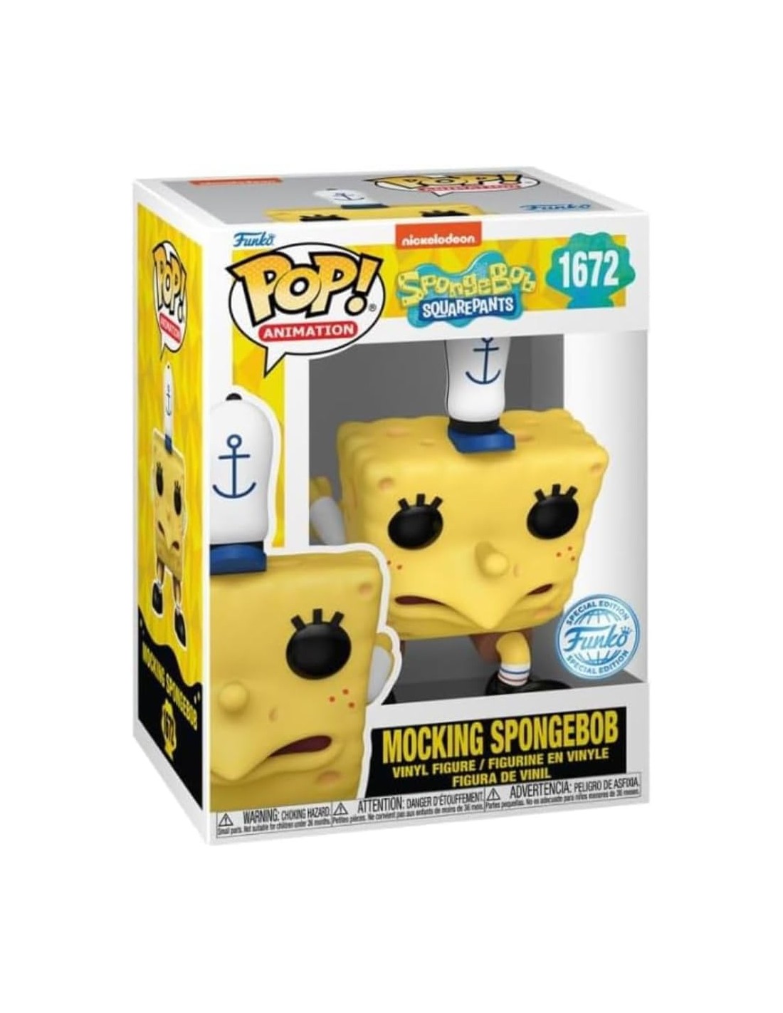 Desde el fondo del mar, llega la divertidísima Figura Funko Pop! de Bob Esponja Burlón (SpongeBob Mocking), Modelo 1672 | 78498. Esta figura rinde homenaje a uno de los momentos más icónicos y a uno de los memes de internet más populares y reconocibles de la serie animada Bob Esponja (SpongeBob SquarePants).