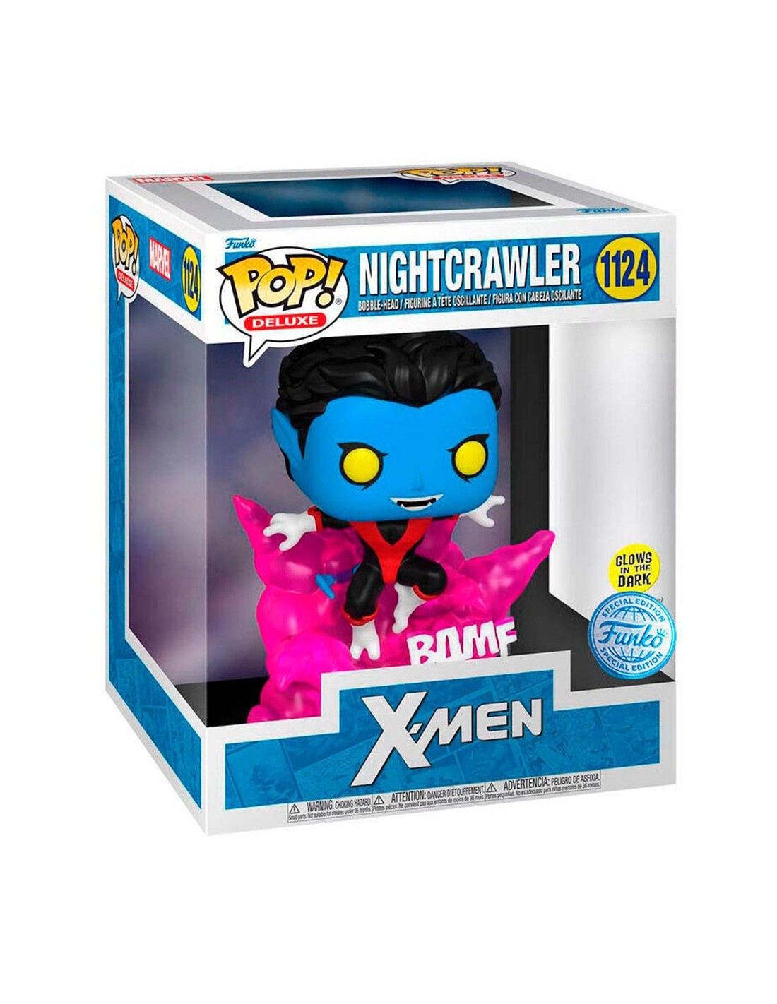 Desde el universo Marvel llega Nightcrawler (Kurt Wagner) en esta impresionante figura Funko Pop! Deluxe Modelo 1124. Con su icónico pelaje azul, cola prensil y ojos amarillos brillantes, esta edición especial resalta la agilidad y personalidad única del mutante teletransportador.