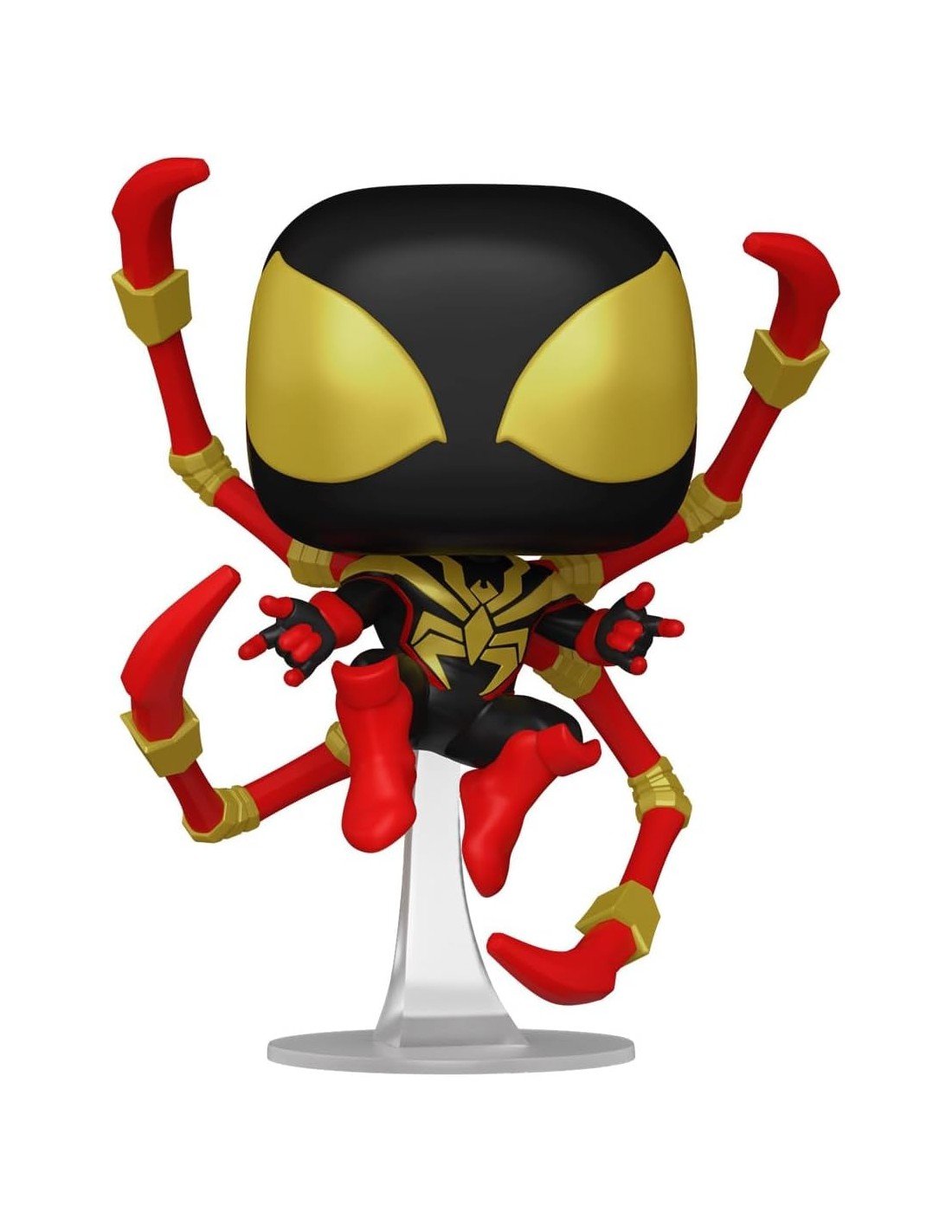 Con el estilo inconfundible de Funko Pop!, la figura captura a Miles luciendo el traje Iron Spider, que se distingue por su diseño negro y rojo característico, pero con un toque de alta tecnología. Esta versión a menudo incluye los brazos arácnidos retráctiles, un detalle que añade un dinamismo visual al coleccionable.