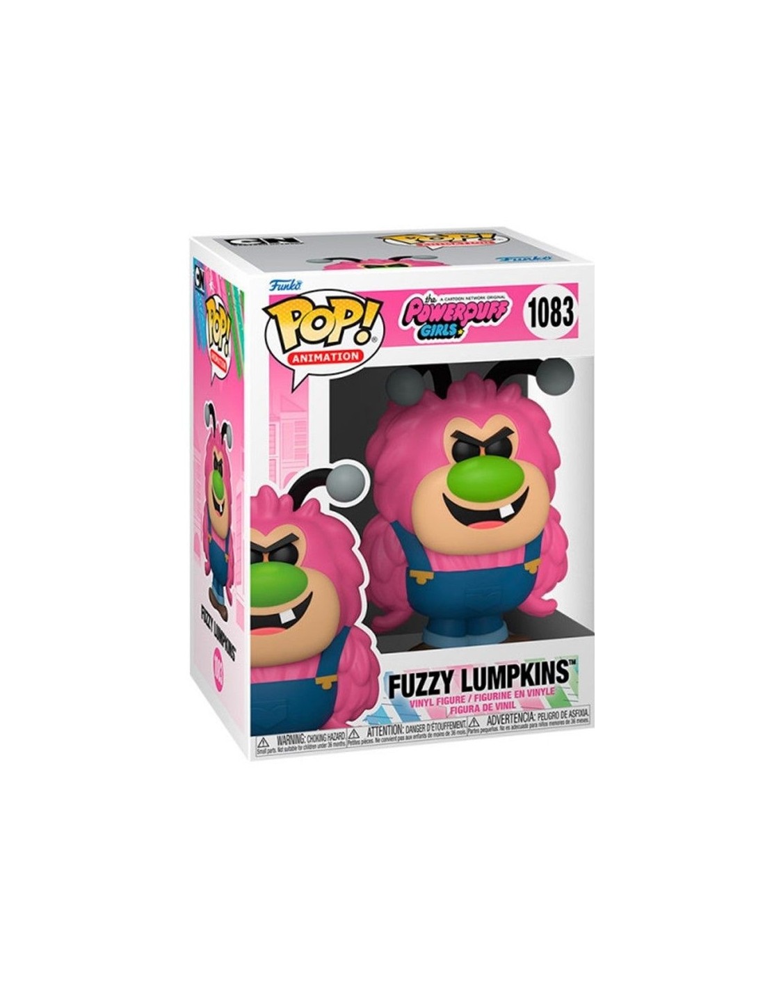 Con el estilo inconfundible de Funko Pop!, la figura captura a Fuzzy Lumpkins con su característico color rosa, su gorra roja y, muy probablemente, sosteniendo su icónico banjo. Los detalles de su diseño, desde sus dos antenas hasta su expresión de gruñido, están cuidadosamente representados, reflejando su eterna frustración con la Ciudad de Saltadilla (Townsville) y, sobre todo, con Las Supernenas.