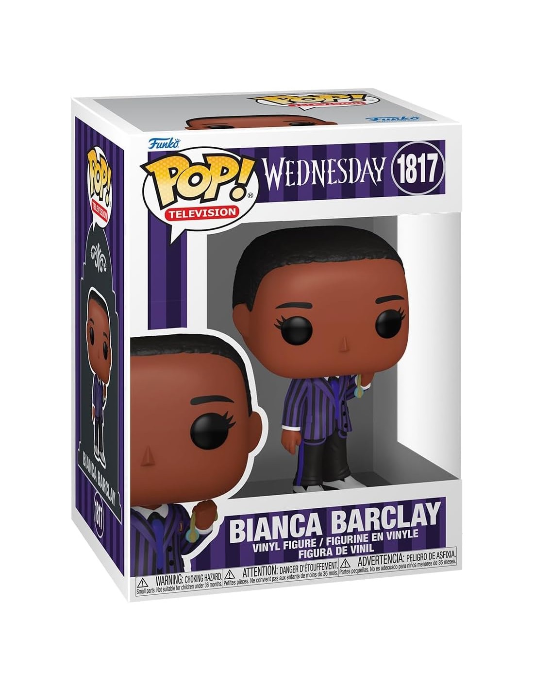 Deja que la sirena más popular de la Academia Nevermore nade hasta tu colección con la Figura Funko Pop! Televisión Miércoles de Bianca Barclay, Modelo 1817. Esta figura de vinilo rinde homenaje a la estudiante más talentosa y a menudo rival de Miércoles Addams, conocida por su estatus de "reina" y su secreto de ser una sirena.