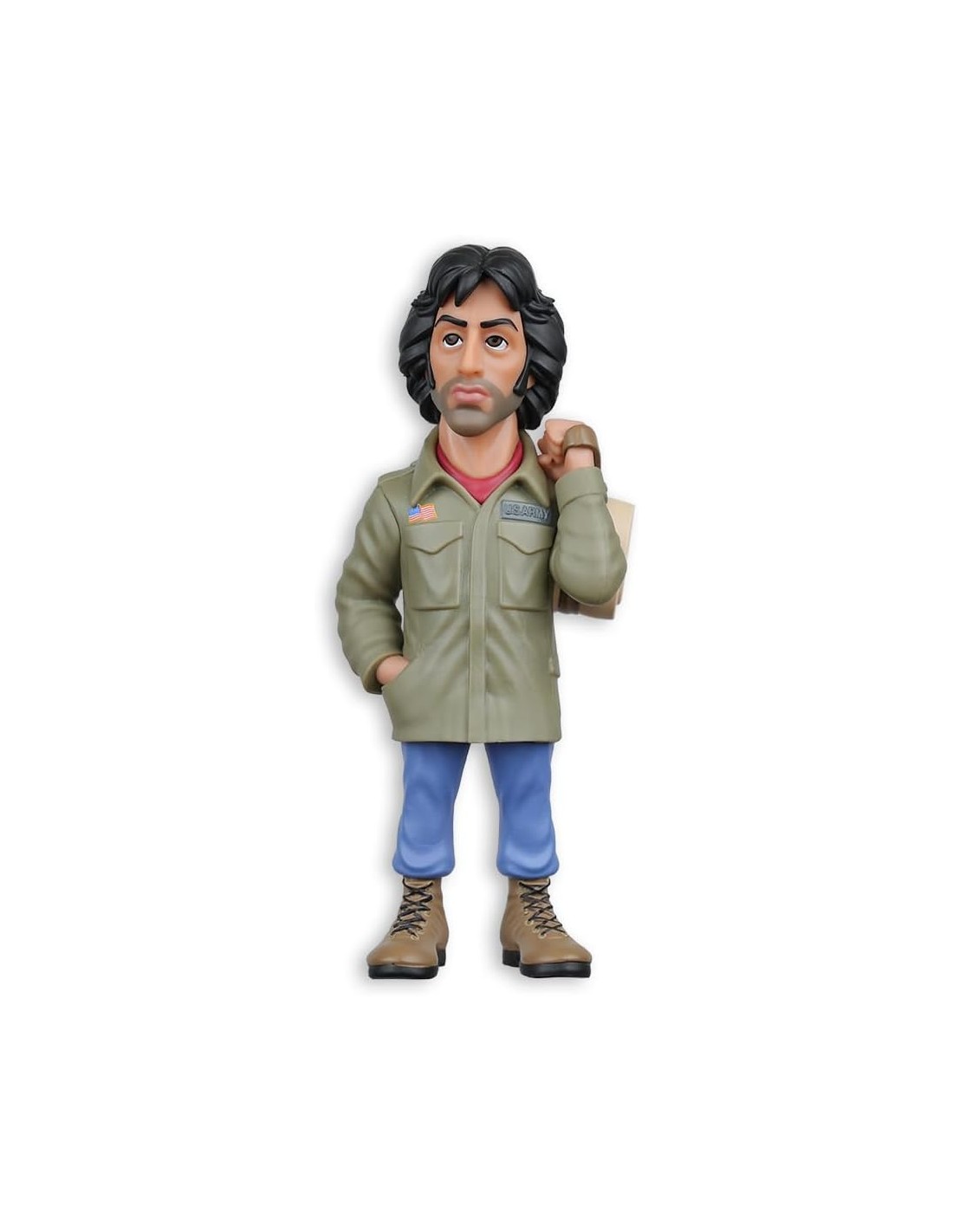 Con el estilo distintivo y estilizado de las figuras Minix, esta pieza captura a Rambo con su icónica gabardina militar de camuflaje, sus jeans y su mochila, reflejando al vagabundo y veterano de Vietnam que busca la paz pero se ve obligado a luchar por su supervivencia. La figura lo presenta en una pose de guardia, lista para el combate de guerrillas.