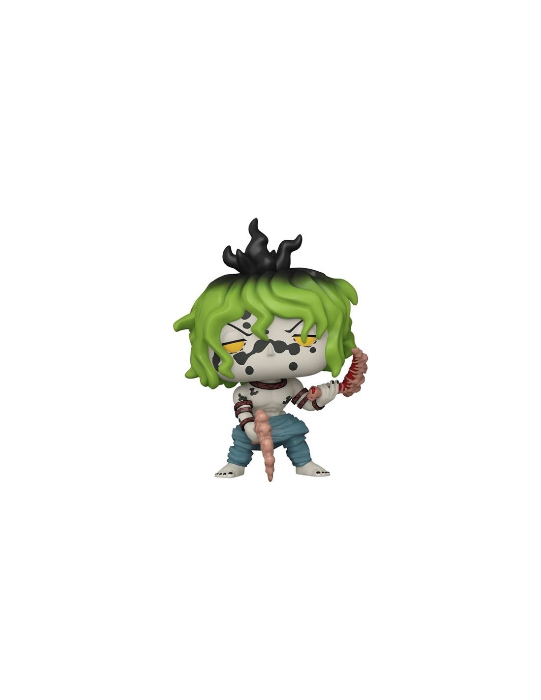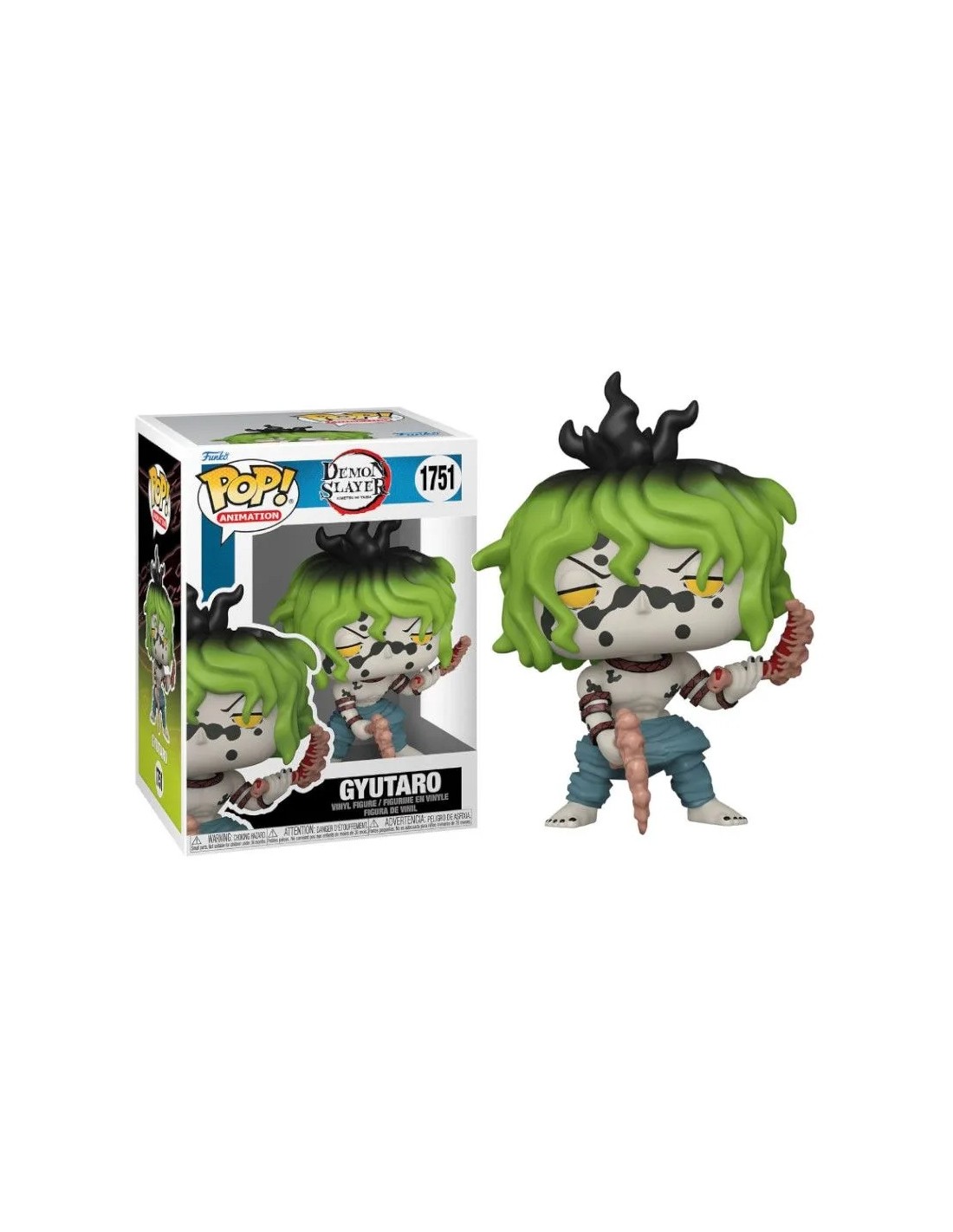 Con el estilo inconfundible de Funko Pop!, la figura captura a Gyutaro con su apariencia demacrada, su complexión esquelética y sus icónicas manchas negras en el cuerpo. Lo más destacado de la figura es su pose dinámica, a menudo portando sus temibles hoces de sangre. Los detalles de su diseño, desde su cabello desordenado hasta su expresión salvaje, están cuidadosamente representados.