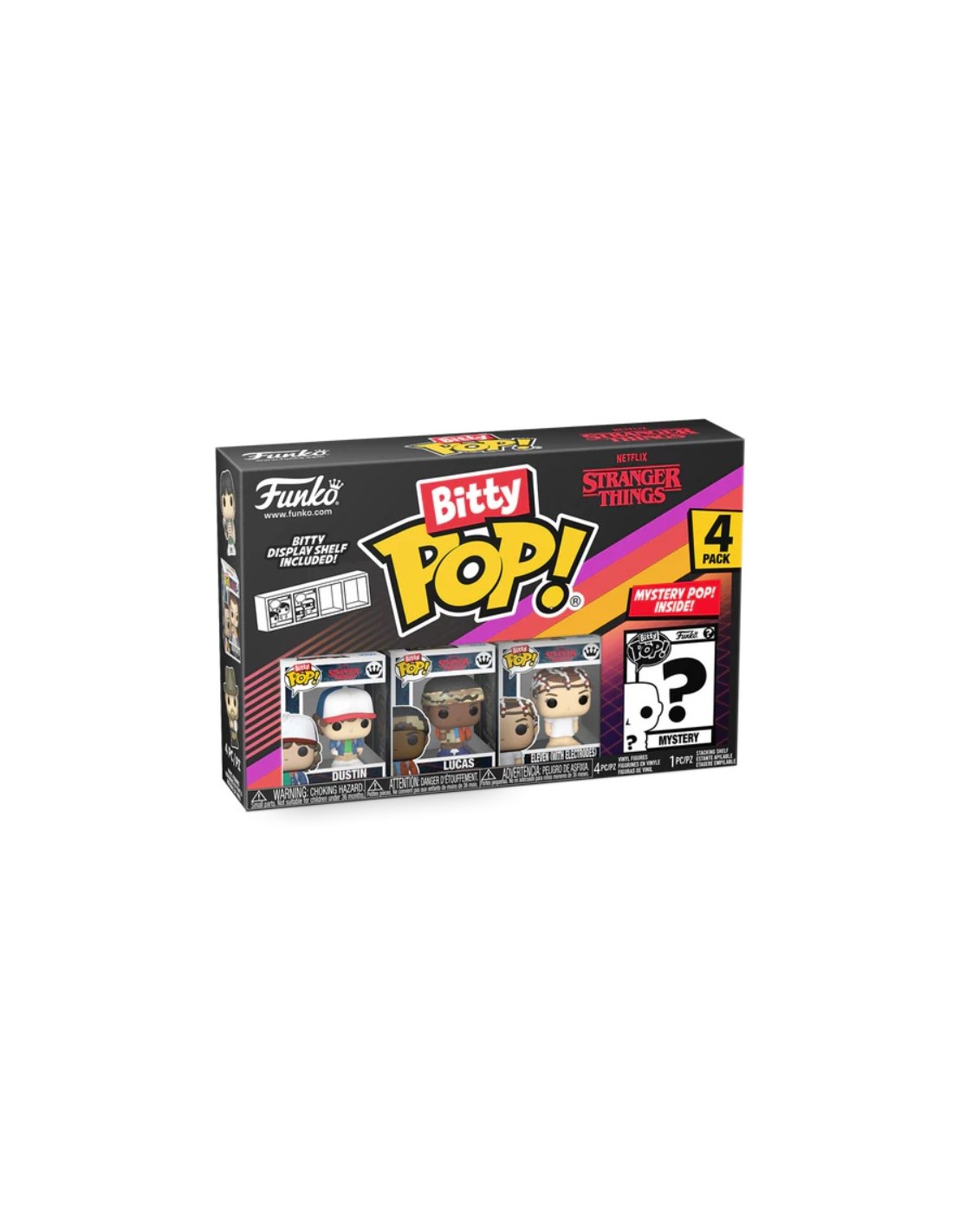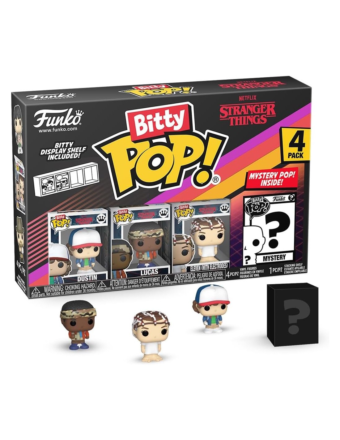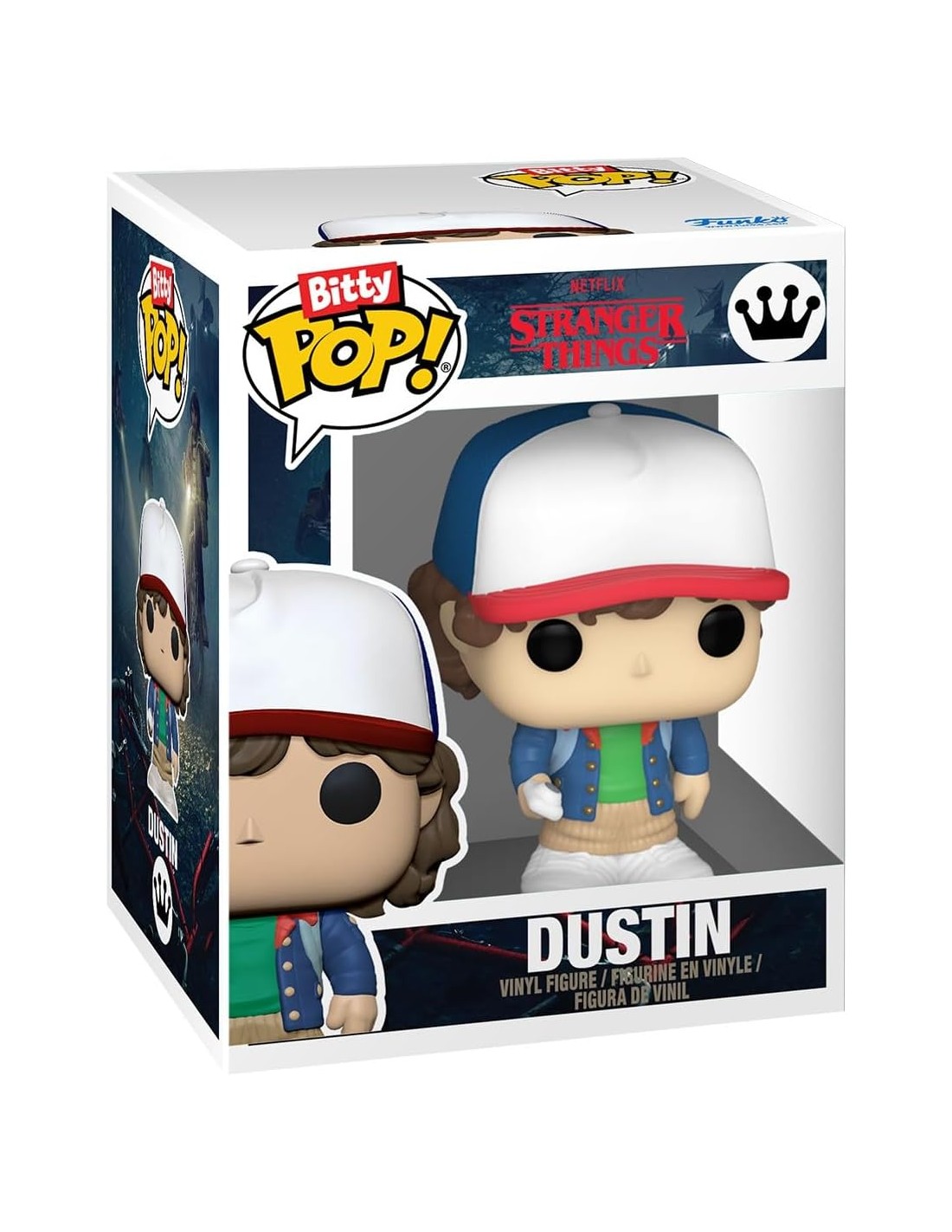 Desde el fenómeno de Netflix, Stranger Things, llega el Pack de 4 Funko Bitty Pop! Modelo Dustin | 83662. Los Bitty Pop! son figuras coleccionables aún más pequeñas que los Funko Pop! estándar, presentadas en cajas acrílicas que se pueden apilar y exhibir.