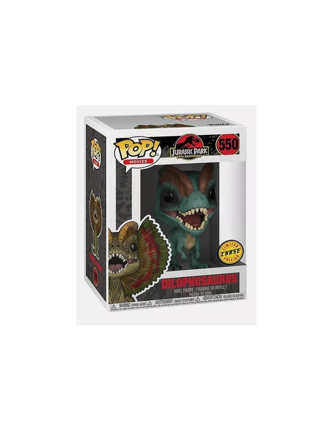 Desde la inolvidable escena de la película clásica Jurassic Park, llega la Figura Funko Pop! del temible Dilophosaurus, Modelo 550 | 26736. Esta figura fue lanzada originalmente para celebrar el 25 aniversario de la película.