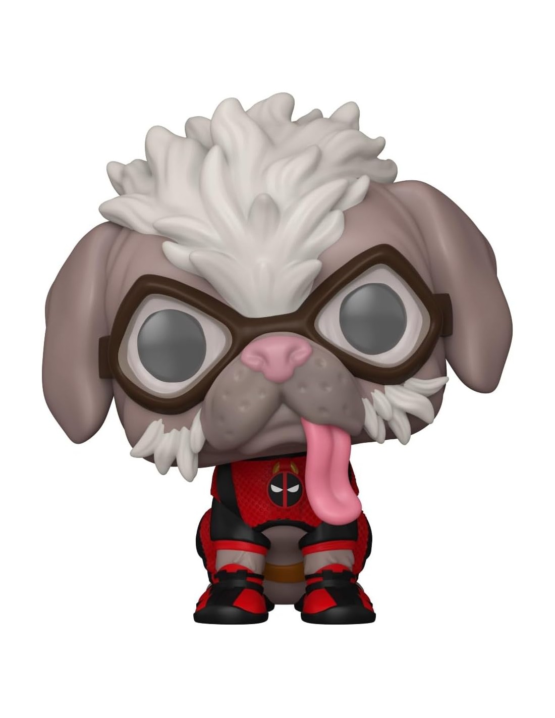 Esta figura estilizada captura a Dogpool en su inconfundible traje rojo y negro de Deadpool, con su hocico vendado o cicatrizado, reflejando su naturaleza ruda pero juguetona. El diseño resalta la comedia y el caos que Dogpool aporta al universo cinematográfico de Marvel.