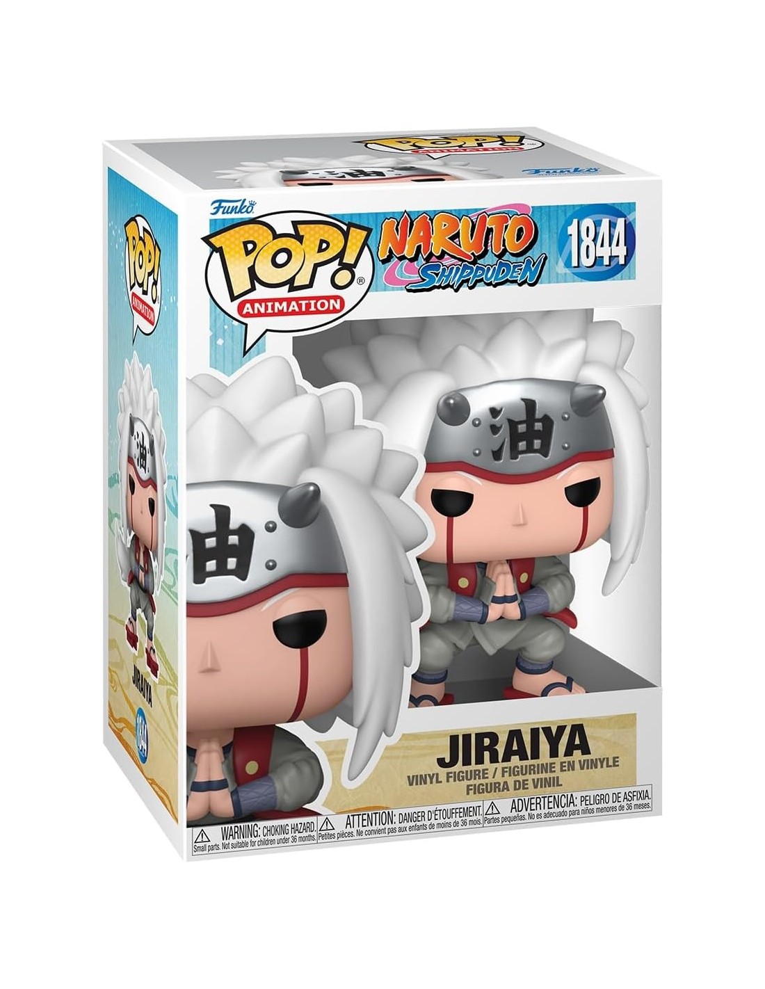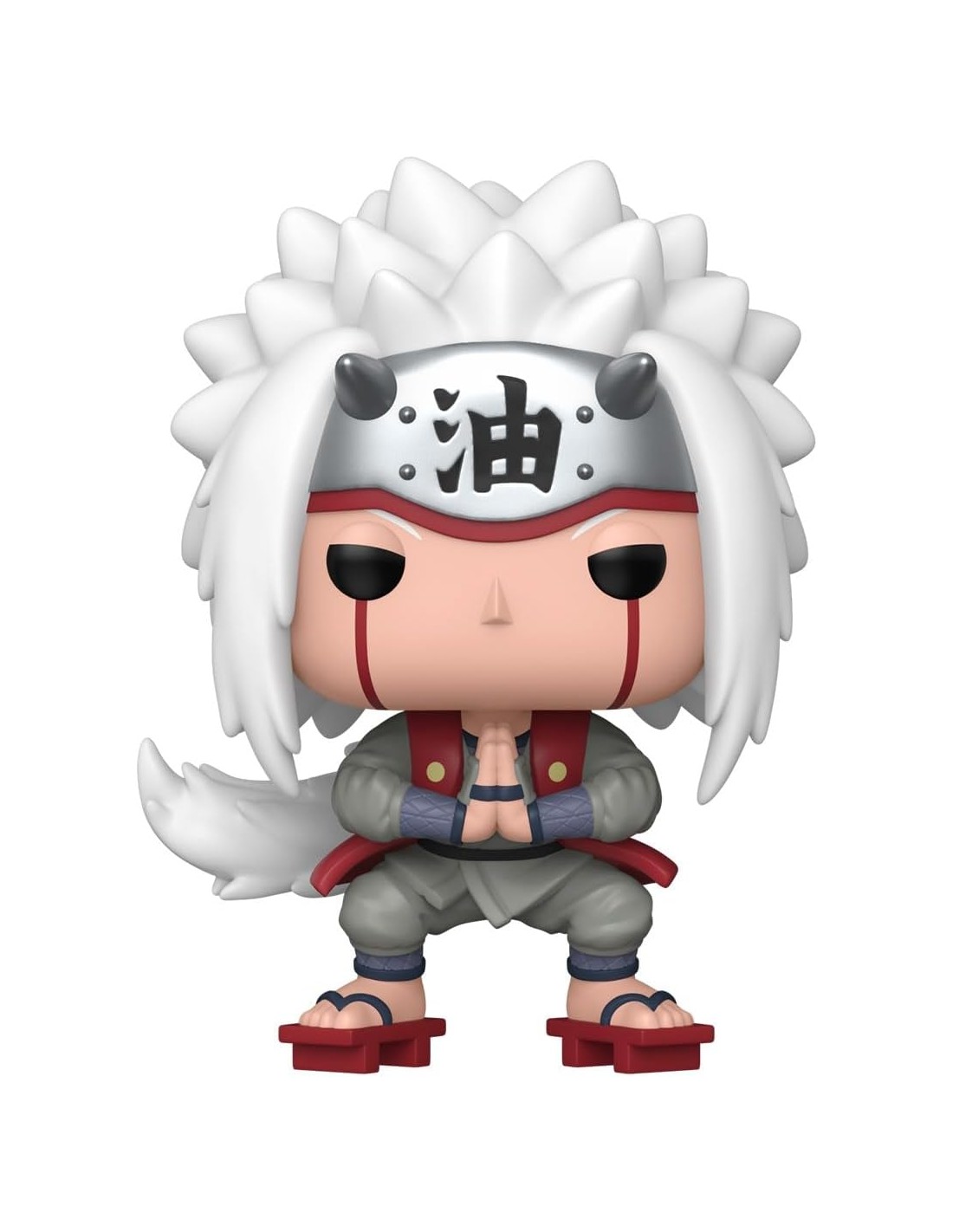 Con el estilo inconfundible de Funko Pop!, la figura captura a Jiraiya con su atuendo característico: el protector de frente de "aceite" (油), su largo cabello blanco erizado y, a menudo, portando un pergamino o haciendo un sello de mano. La figura lo presenta en una pose de maestro o viajero, reflejando su vida como escritor y su incansable búsqueda de la paz.