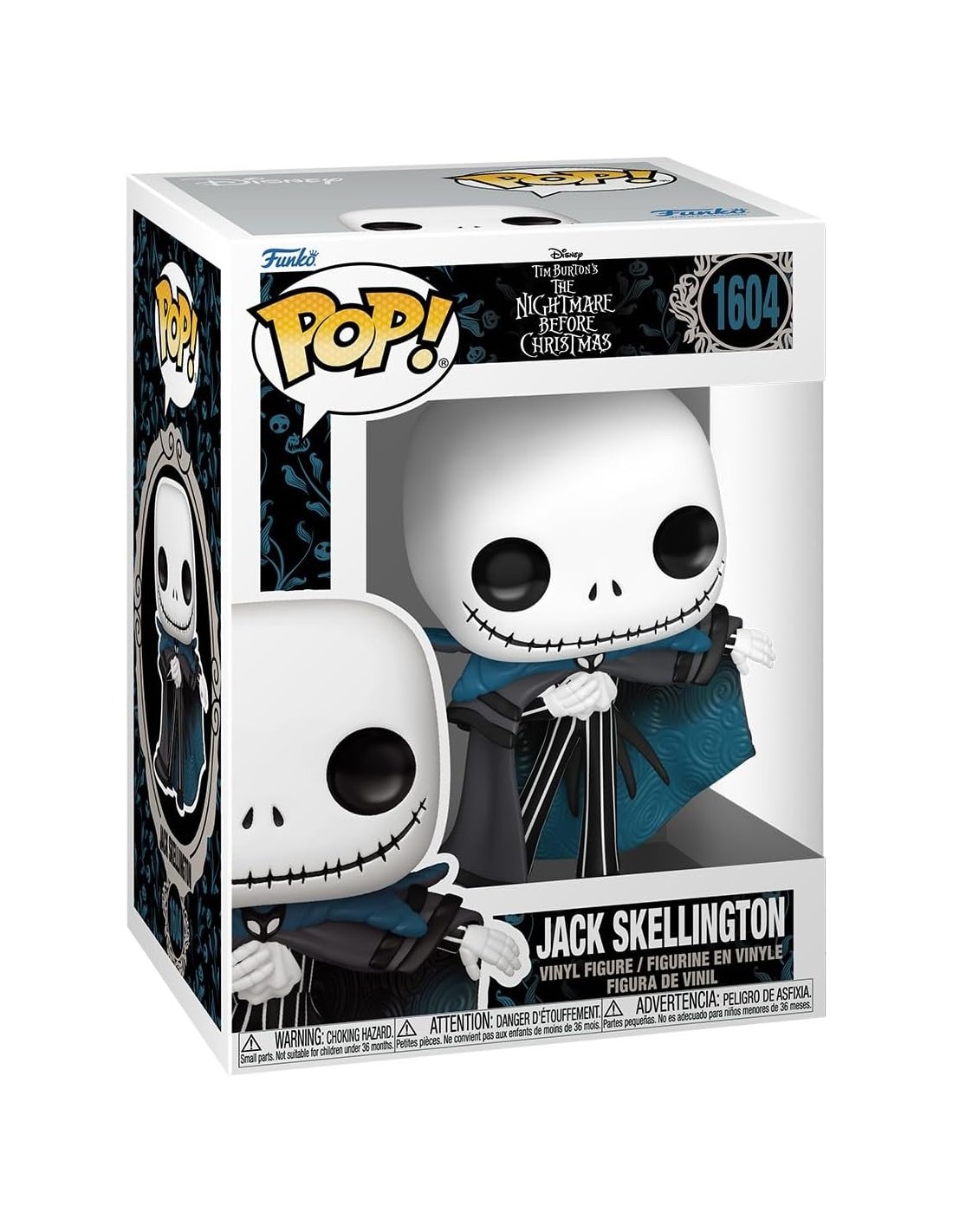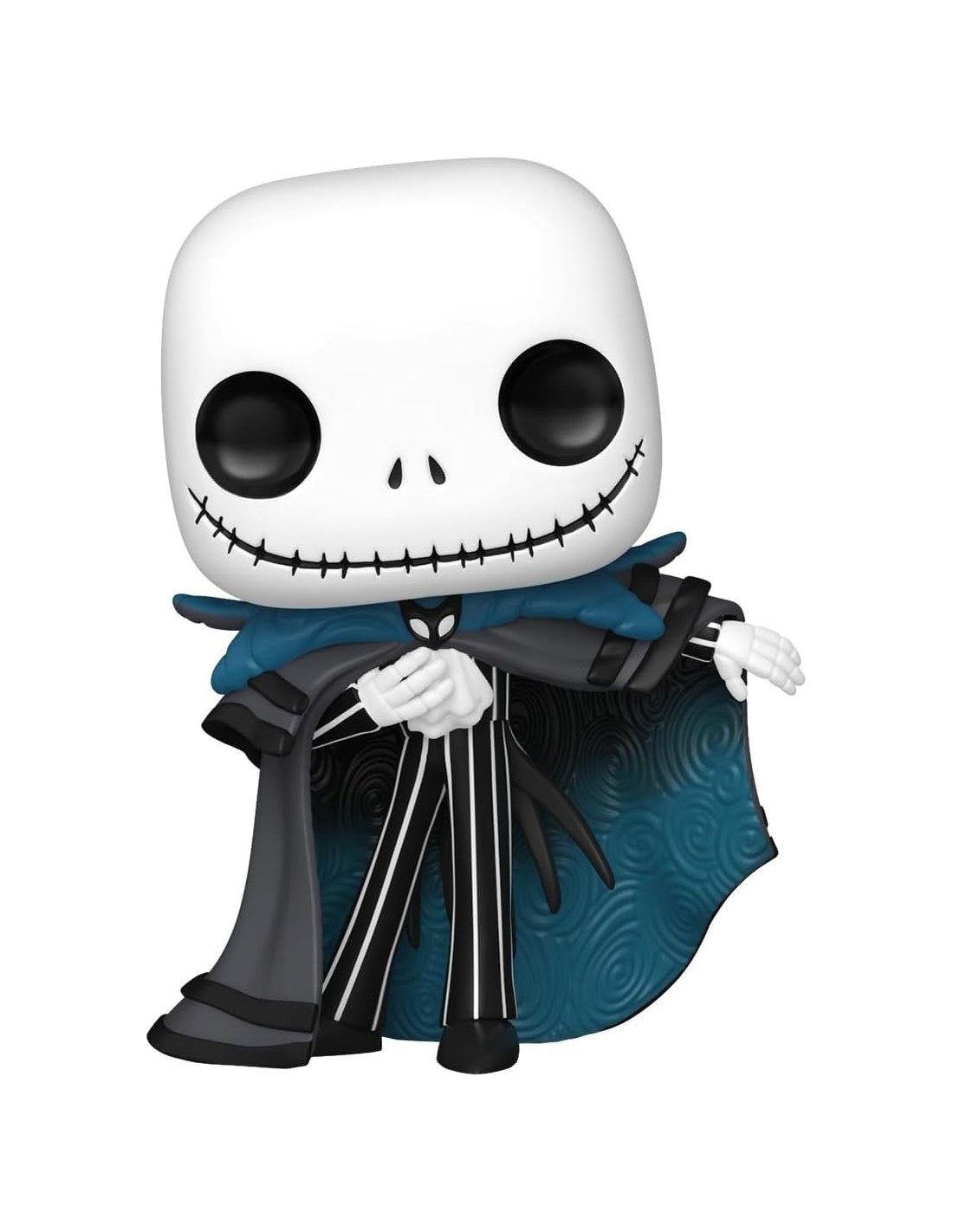 Con el estilo inconfundible de Funko Pop!, la figura captura a Jack Skellington con su característico y elegante traje de rayas. La figura lo presenta en una pose que evoca su carisma y su eterna búsqueda de algo más allá de Halloween, o quizás mientras planea su siguiente gran idea. Los detalles de su diseño, desde su cabeza de calavera hasta su esmoquin, están cuidadosamente representados.