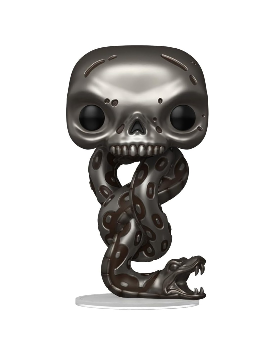 Con el estilo inconfundible de Funko Pop!, la figura captura la Marca Tenebrosa en su forma más reconocible: una calavera con una serpiente que emerge de su boca. Este símbolo, que suele aparecer en el cielo como un signo de la presencia de Voldemort o un ataque de sus Mortífagos, está aquí estilizado de una manera que es a la vez oscura y coleccionable.