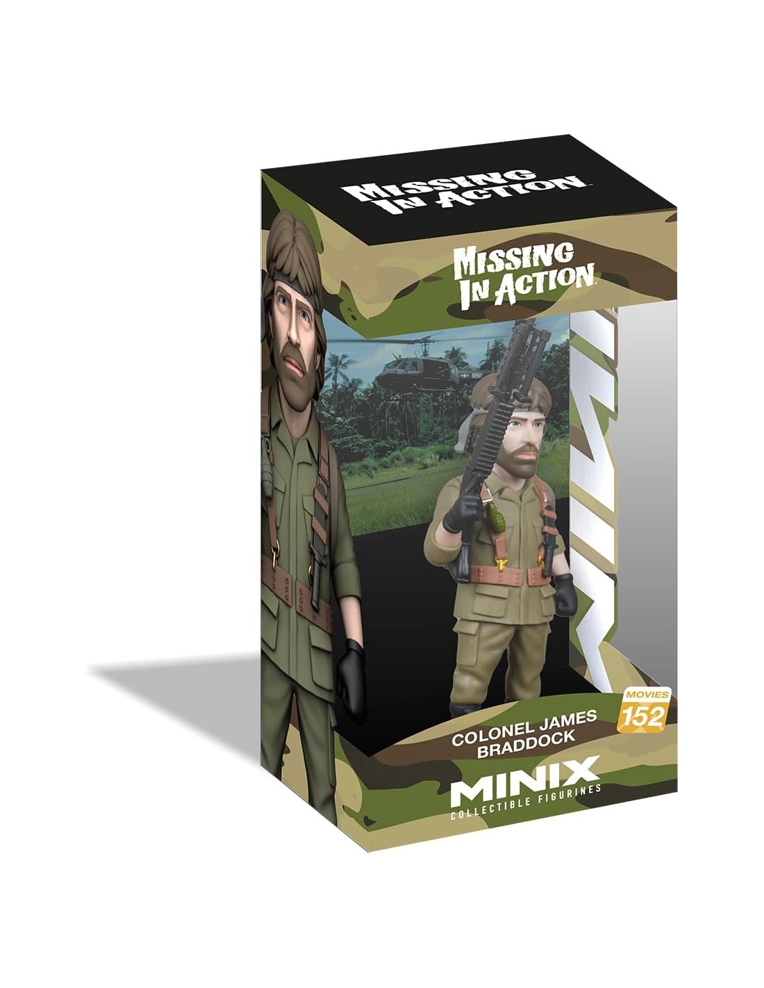 Vuelve a la acción y el drama de los años 80 con la Figura Minix Desaparecido en Combate del Coronel James Braddock, Modelo 152. Esta figura de vinilo coleccionable rinde homenaje al icónico protagonista de la película de acción Missing in Action (Desaparecido en Combate), el formidable soldado y experto en artes marciales interpretado por Chuck Norris.