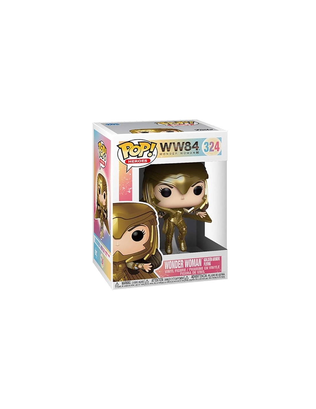 Desde la superproducción de DC, Wonder Woman 1984, llega la figura Funko Pop! de Wonder Woman con Armadura Dorada Volando, Modelo 324 con código 46660. Esta figura inmortaliza el impresionante atuendo de batalla de Diana Prince, la legendaria Armadura Dorada, que utiliza alas gigantes en la película.