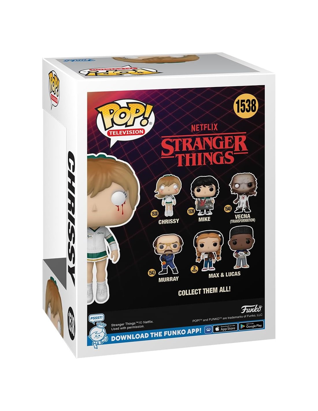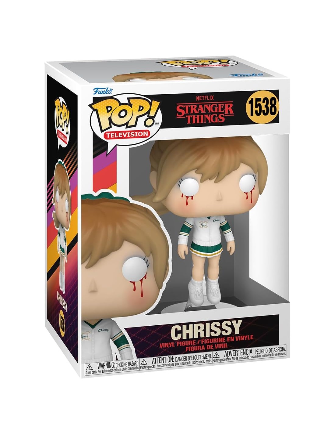 La Figura Funko Pop! Televisión Stranger Things Chrissy Flotando Modelo 1538 muestra a Chrissy Cunningham en el inquietante momento en el que queda suspendida en el aire bajo la influencia de Vecna. Su pose, con el cuerpo elevándose y los ojos en blanco, captura a la perfección la tensión y el misterio característicos de la cuarta temporada de Stranger Things. El diseño incorpora detalles de su vestuario de animadora y un soporte transparente que simula la levitación, creando una pieza tan llamativa como perturbadora para cualquier fan de la serie.