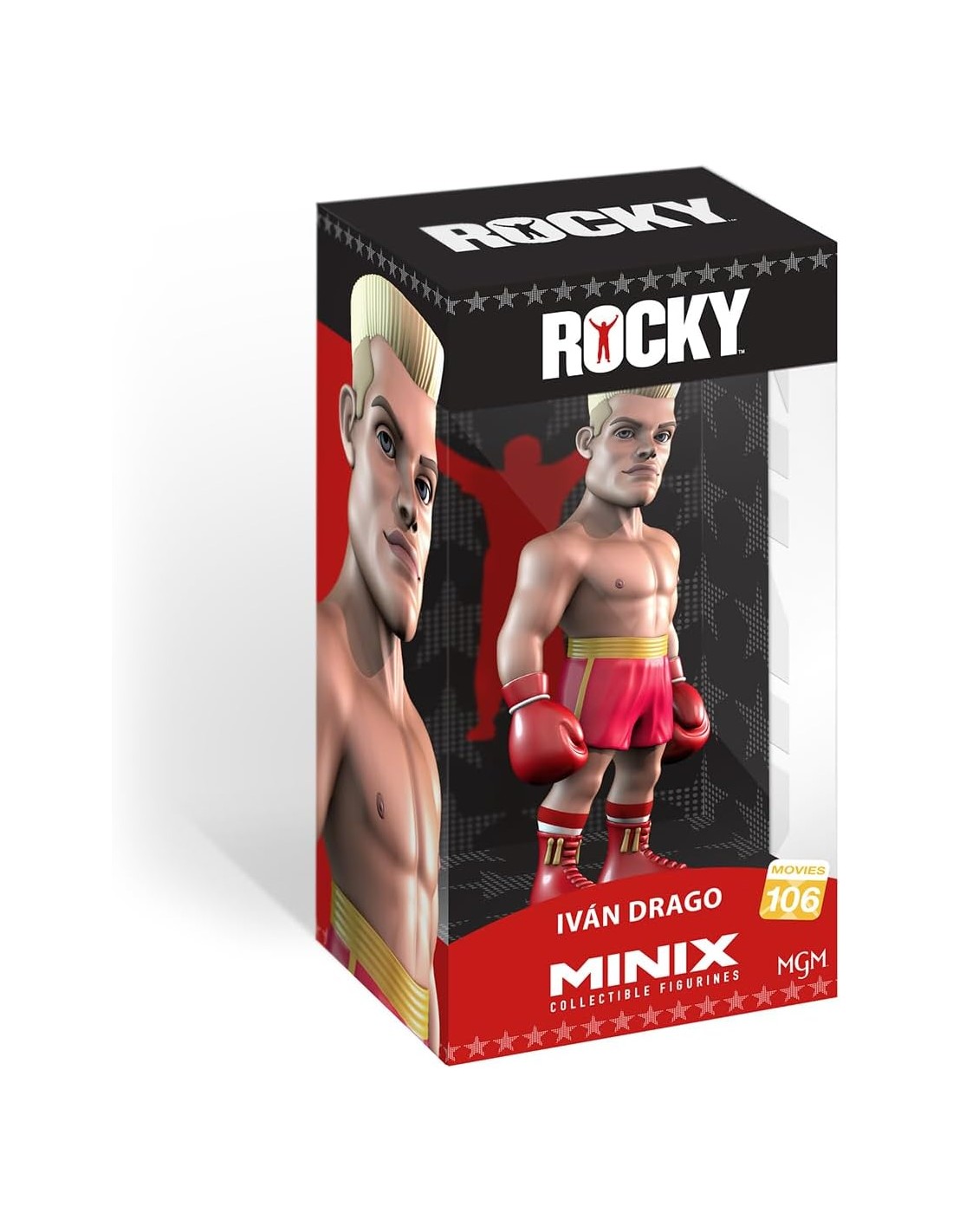 La Figura Minix Rocky Ivan Drago Modelo 106 representa al legendario púgil soviético que marcó uno de los enfrentamientos más memorables de la saga Rocky. Con el característico estilo Minix, la figura muestra a Ivan Drago con rasgos definidos, postura imponente y detalles que evocan su fuerza y frialdad sobre el ring.