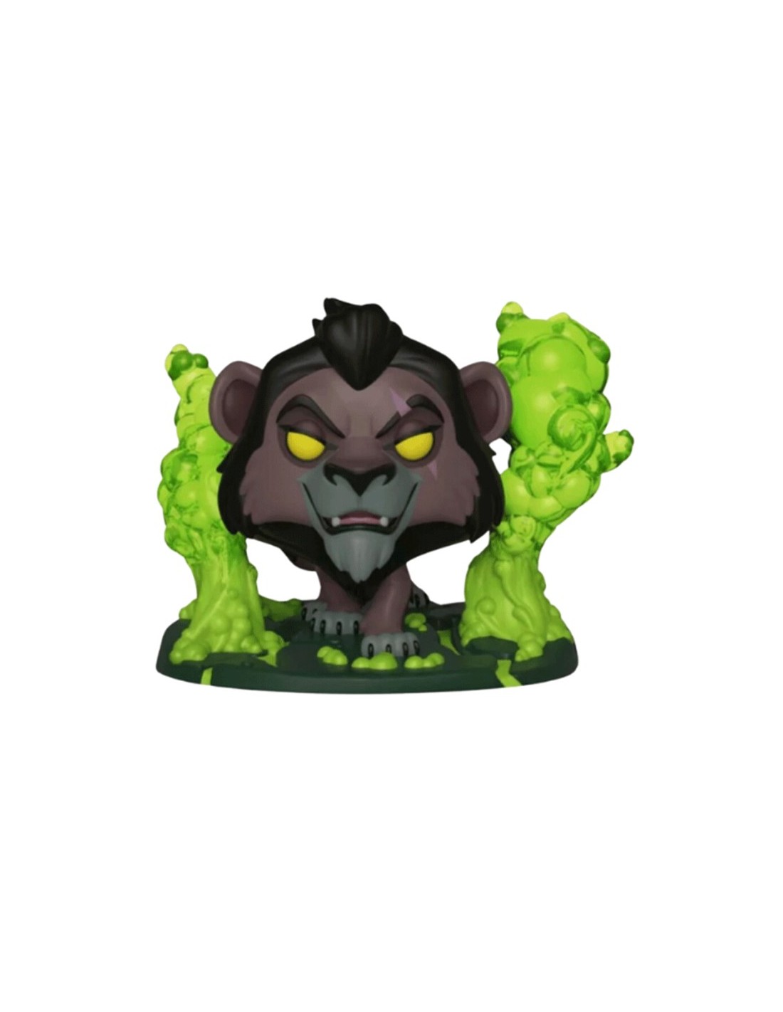 Fabricada en vinilo de alta calidad, esta figura Funko Pop! destaca por su diseño dramático y detallado, con efectos de fuego que realzan la estética oscura del personaje y lo diferencian de otras versiones de Scar. Su tamaño estándar Funko la hace ideal para exhibir en vitrinas, estanterías o escritorios, convirtiéndose en una pieza protagonista dentro de cualquier colección Disney.