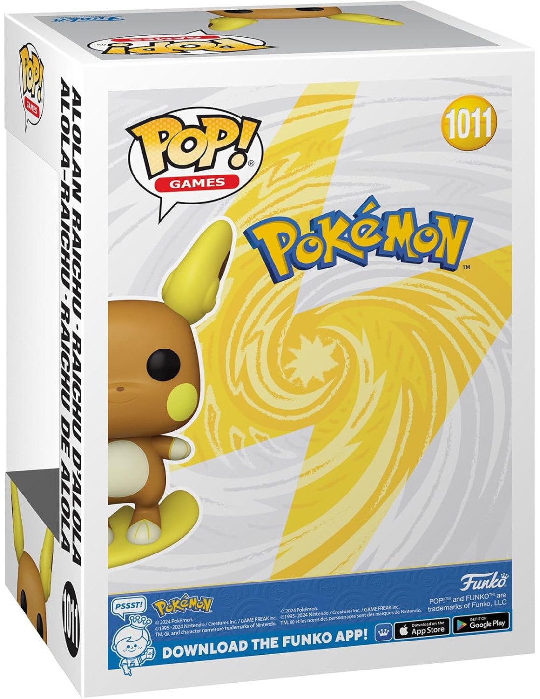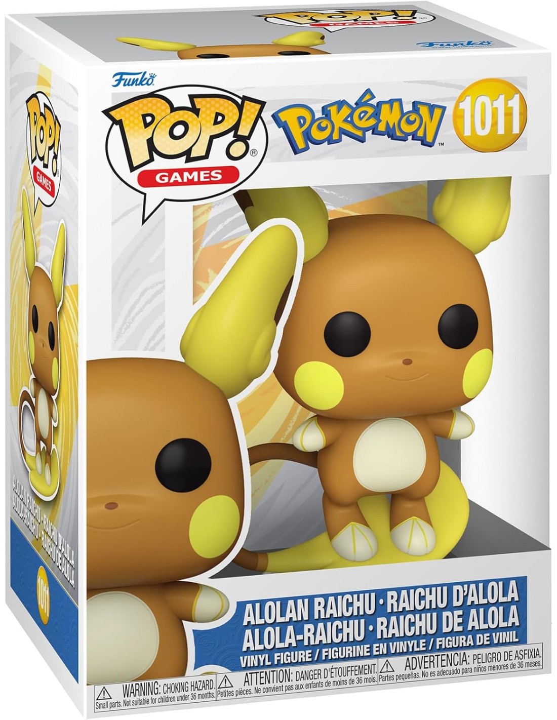 Fabricada en vinilo de alta calidad, esta figura Funko Pop! captura fielmente el diseño único de Raichu de Alola, incluyendo su expresión amigable, sus orejas redondeadas y su característica cola en forma de tabla. Su tamaño estándar la hace perfecta para exhibir en vitrinas, estanterías o escritorios, siendo ideal para colecciones de Pokémon, videojuegos y cultura pop.