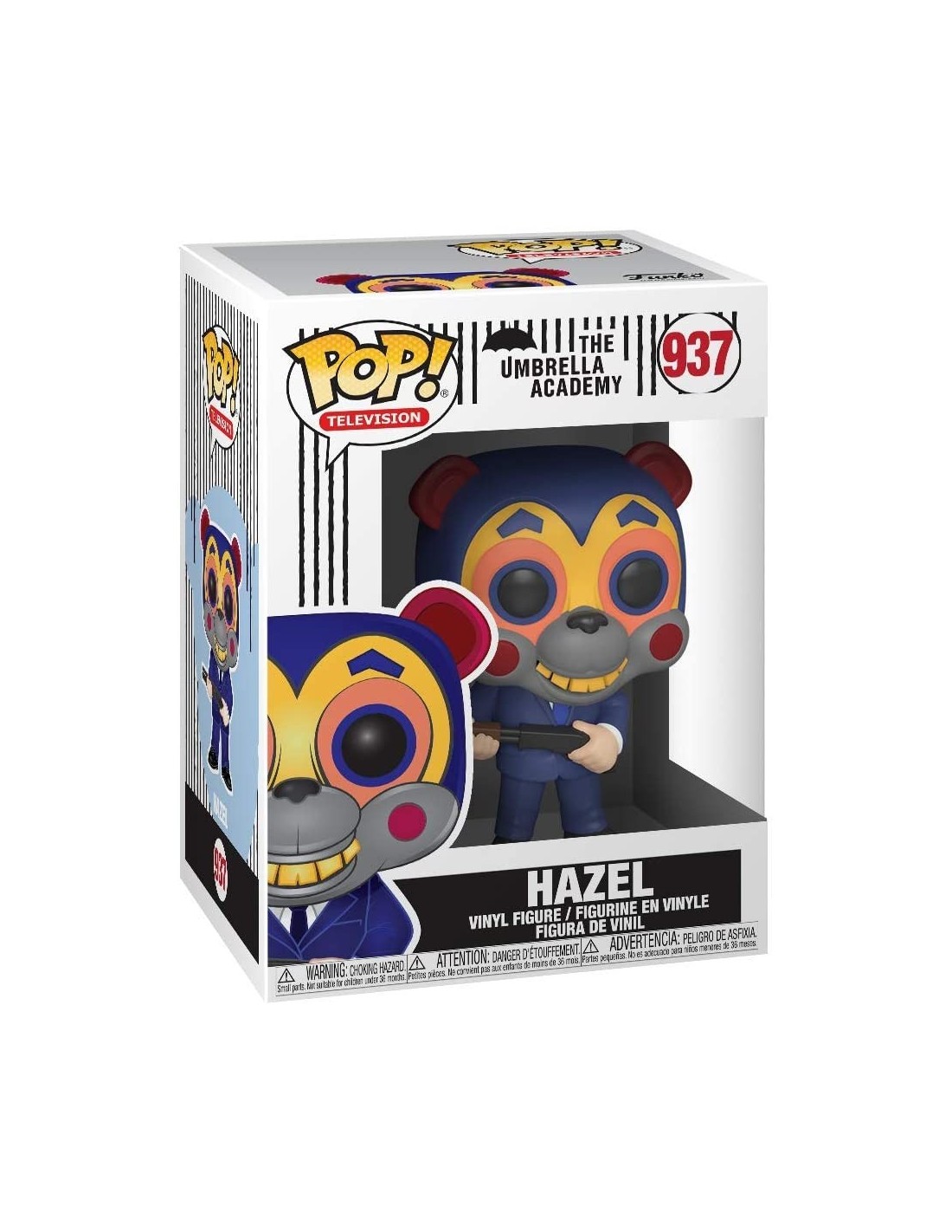 - De la colección Umbrella Academy, Hazel con máscara como muñeco Funko Pop de vinilo
